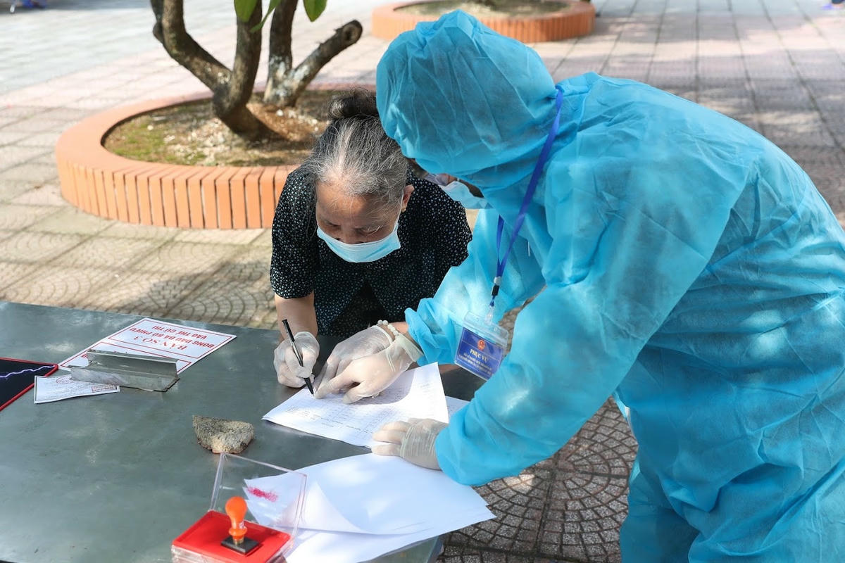 Tại đây không ồn ào nhưng tâm trạng của các cử tri rất háo hức. Người dân tham gia bầu cử theo đúng sắp xếp đã được hướng dẫn. Mỗi cử tri đều đeo khẩu trang, sử dụng găng tay y tế riêng biệt, hạn chế tối đa nguy cơ lây nhiễm chéo. Run run cầm lá phiếu bầu trên tay, cụ Ngô Thị Việt (85 tuổi) không giấu được sự xúc động khi thực hiện quyền bầu cử trong hoàn cảnh cách ly đặc biệt này.