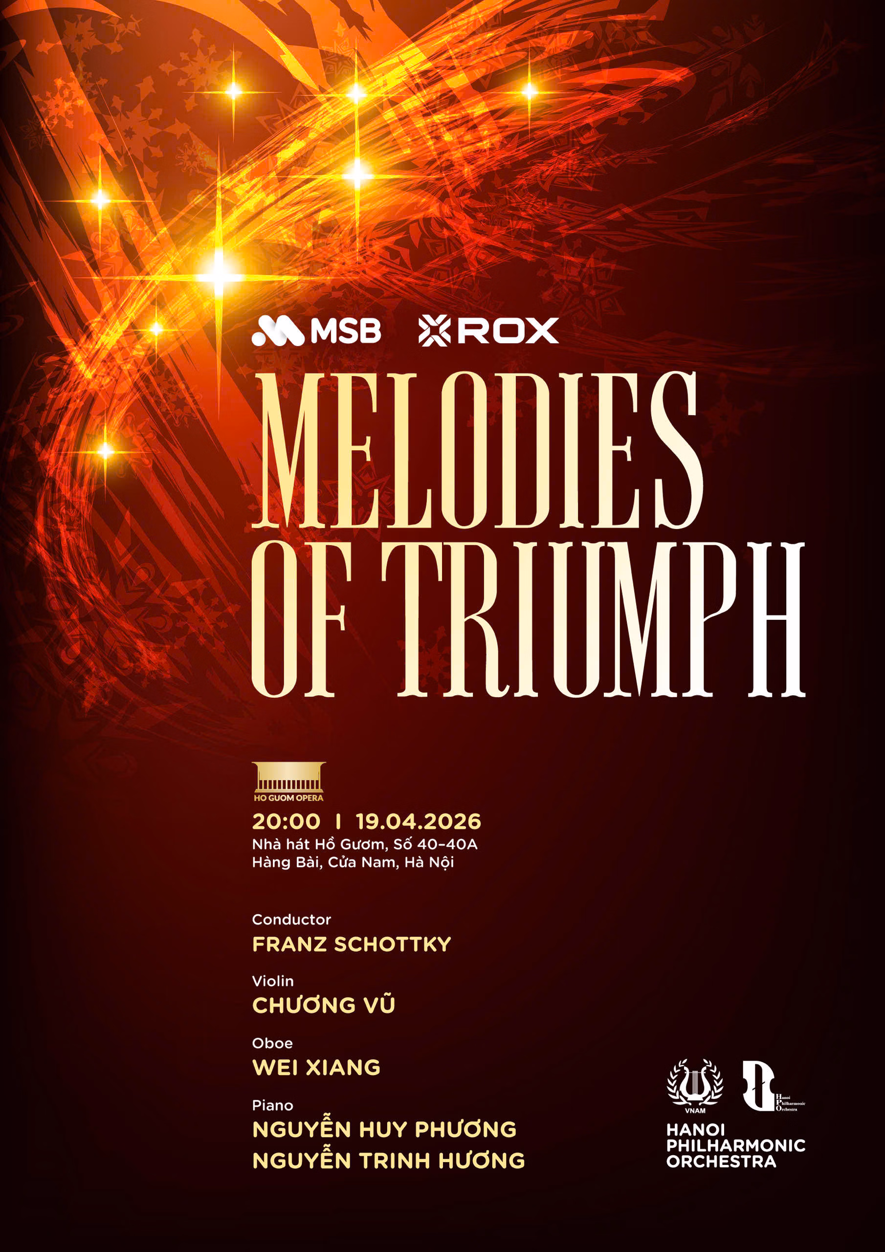 Hòa nhạc “Melodies of Triumph” sẽ diễn ra vào 20h ngày 19/4/2026 được kỳ vọng mở ra một không gian thưởng thức nơi âm nhạc trở thành một trải nghiệm sống. Ở đó, những thanh âm tinh hoa từ kho tàng âm nhạc hàn lâm châu Âu được cảm nhận như một phần của nhịp sống tinh tế giữa lòng Hà Nội.