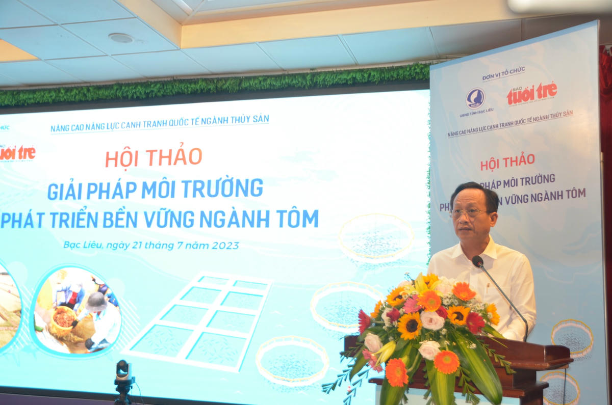Phát biểu tại Hội thảo, Chủ tịch UBND tỉnh Bạc Liêu Phạm Văn Thiều cho biết, với diện tích hơn 140 ngàn ha, Bạc Liêu là một trong số 3 địa phương có diện tích và sản lượng nuôi tôm đứng đầu cả nước. Sản lượng hàng năm của Bạc Liêu đóng góp từ 20 - 21% tổng sản lượng tôm nuôi của cả nước. Tuy nhiên, do nghề nuôi tôm của tỉnh Bạc Liêu nói riêng và cả nước nói chung ngày một phát triển tăng cả về số lượng và chất lượng, từ đó tạo nên một thách thức lớn đó là “bài toán” về môi trường. Nếu như chạy theo lợi ích kinh tế trước mắt mà vấn đề về ô nhiễm và xả thải ra môi trường không được xử lý tốt, thì sẽ trở thành trở ngại rất lớn trong tương lai.