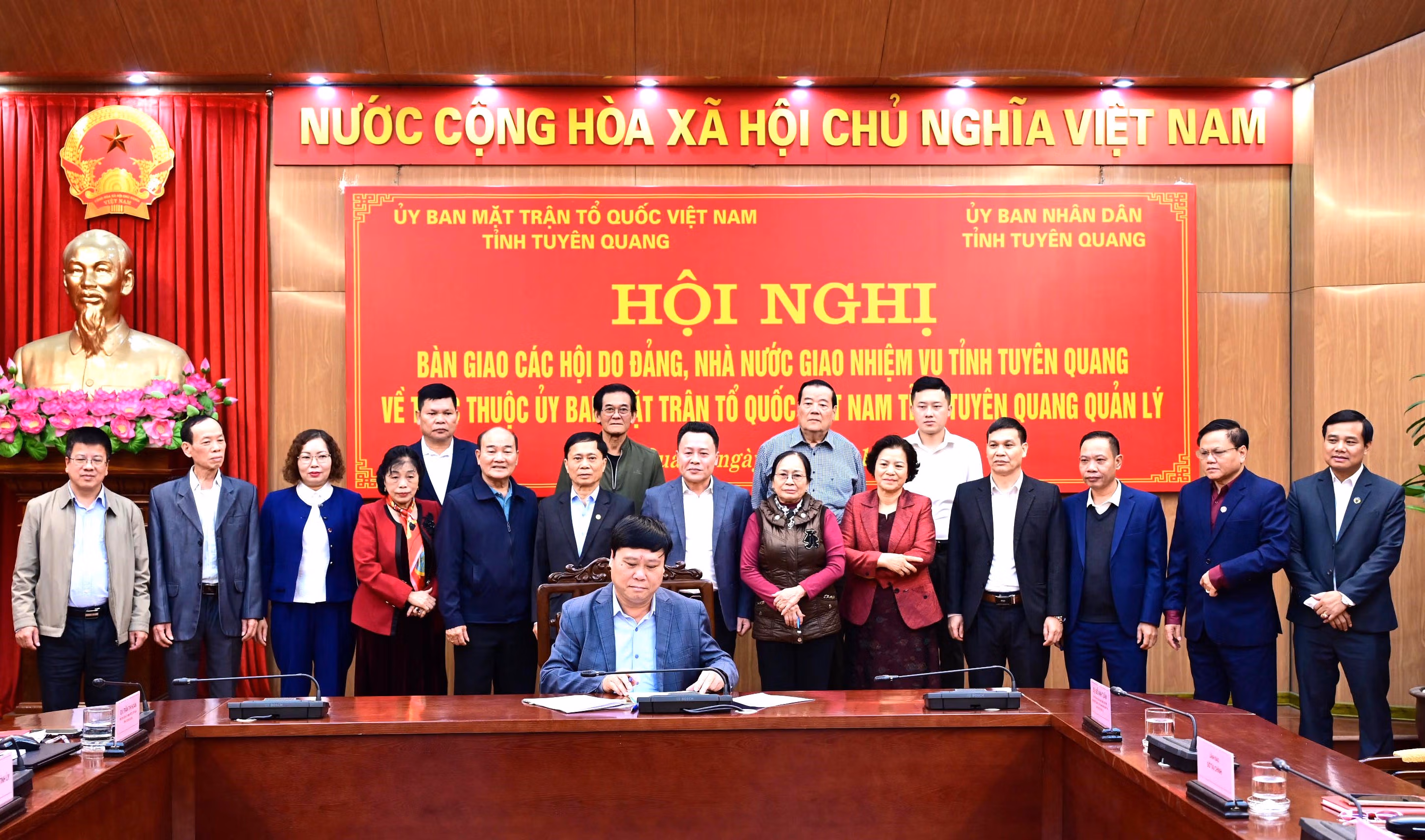 Các hội được bàn giao về Ủy ban MTTQ Việt Nam tỉnh Tuyên Quang gồm: Hội Chữ thập đỏ tỉnh; Hội Nhà báo tỉnh; Hội Văn học nghệ thuật tỉnh; Hội Đông y tỉnh; Hội Bảo trợ người khuyết tật và trẻ mồ côi tỉnh; Hội Khuyến học tỉnh; Hội Luật gia tỉnh; Hội Nạn nhân chất độc da cam/Dioxin tỉnh; Hội Cựu Thanh niên xung phong tỉnh; Hội Người cao tuổi tỉnh; Hội Làm vườn tỉnh; Liên minh Hợp tác xã tỉnh; Liên hiệp các hội Khoa học và Kỹ thuật tỉnh; Liên hiệp các tổ chức Hữu nghị tỉnh; Hội Cựu giáo chức tỉnh; Hội Hữu nghị Việt Nam – Lào tỉnh; Đoàn Luật sư tỉnh; Hội Liên hiệp Thanh niên tỉnh; Câu lạc bộ Tân Trào; Hội Hữu nghị Việt Nam – Pháp tỉnh và Hội Hữu nghị Việt Nam - Thái Lan tỉnh.