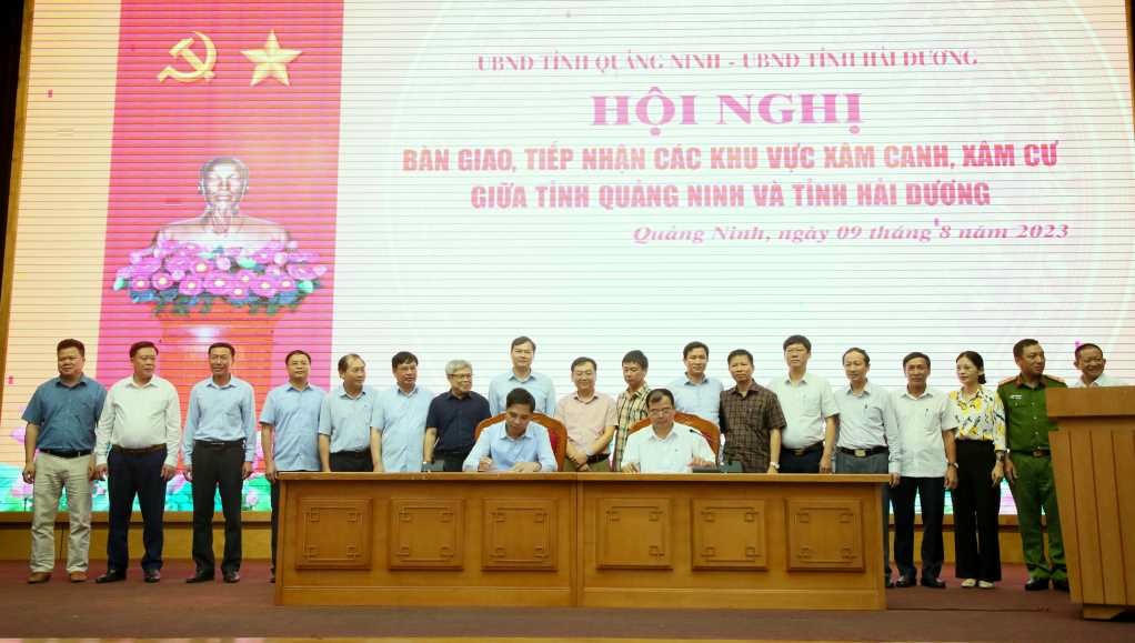 Lãnh đạo hai tỉnh Quảng Ninh và Hải Dương vừa ký quyết định bàn giao, tiếp nhận 338 hộ dân thuộc 3 khu vực xâm canh, xâm cư của 2 địa phương.