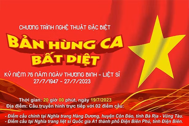 Nhân dịp Kỷ niệm 76 năm Ngày Thương binh - Liệt sĩ (27/7/1947-27/7/2023), Bộ Văn hóa, Thể thao và Du lịch chủ trì, phối hợp với UBND tỉnh Bà Rịa - Vũng Tàu và UBND tỉnh Điện Biên tổ chức chương trình nghệ thuật đặc biệt với chủ đề “Bản hùng ca bất diệt”.