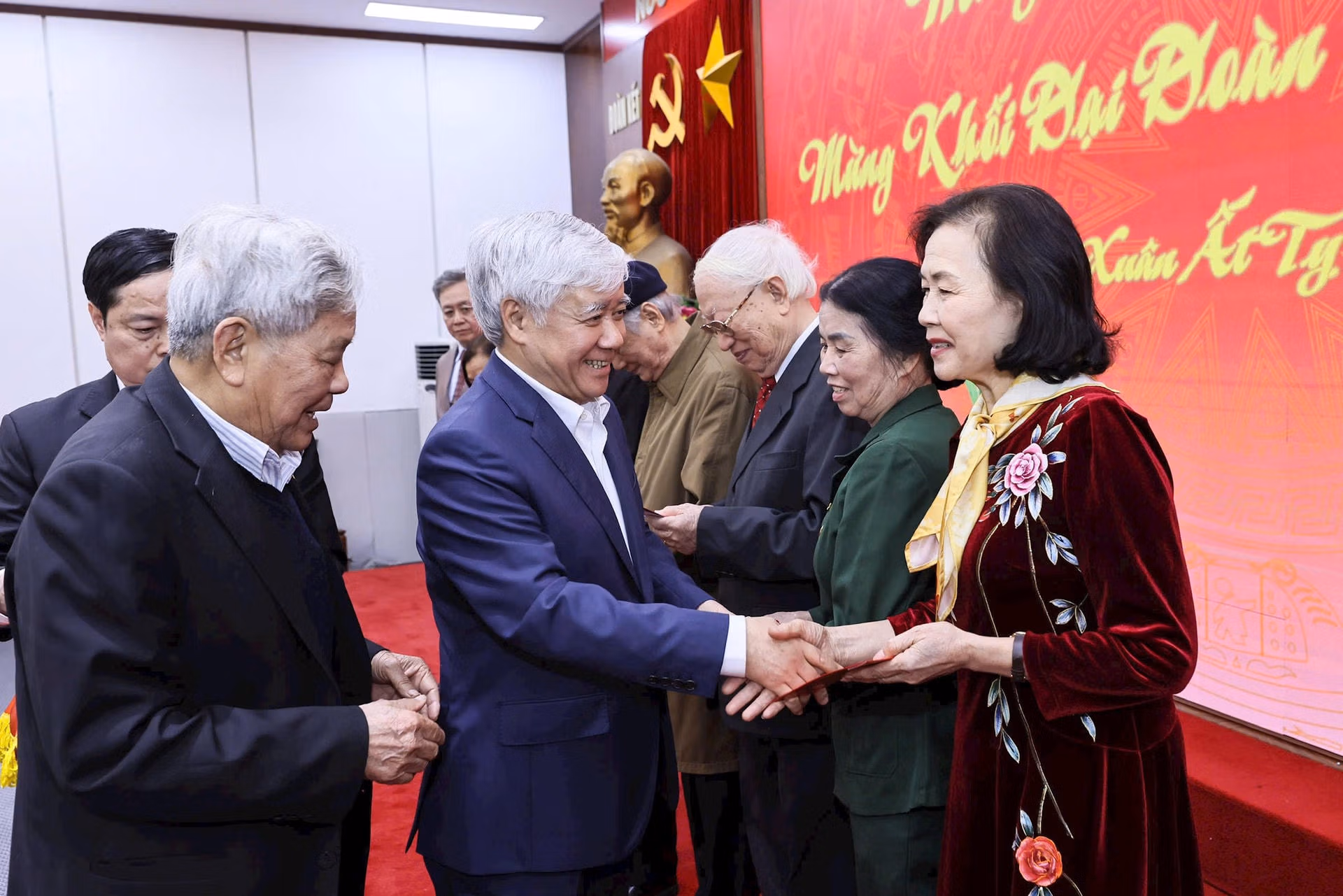Nhân dịp chuẩn bị đón Tết Nguyên đán Ất Tỵ 2025, chiều 20/1, tại Hà Nội, Ban Thường trực UBTƯ MTTQ Việt Nam tổ chức gặp mặt cán bộ hưu trí Cơ quan UBTƯ MTTQ Việt Nam. Ông Đỗ Văn Chiến, Ủy viên Bộ Chính trị, Bí thư Trung ương Đảng, Chủ tịch UBTƯ MTTQ Việt Nam; bà Nguyễn Thị Thu Hà, Ủy viên Trung ương Đảng, Phó Chủ tịch - Tổng Thư ký UBTƯ MTTQ Việt Nam; ông Nguyễn Túc, Ủy viên Đoàn Chủ tịch, Trưởng Ban liên lạc hưu trí Cơ quan UBTƯ MTTQ Việt Nam chủ trì buổi gặp mặt.