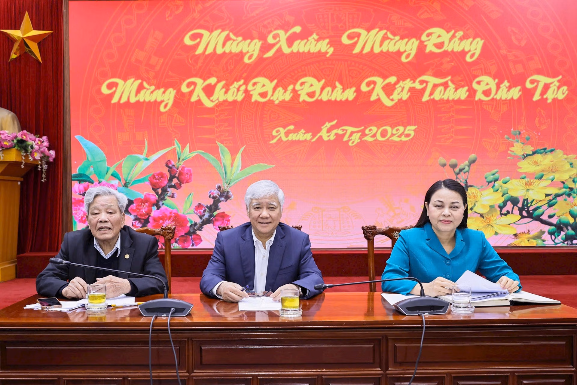 Nhân dịp Tết Nguyên đán Ất Tỵ 2025 sắp tới, Chủ tịch Đỗ Văn Chiến gửi lời chúc tốt đẹp nhất đến các vị nguyên lãnh đạo, cán bộ Mặt trận qua các thời kỳ, chúc các vị đón năm mới mạnh khỏe, hạnh phúc, năm mới thắng lợi mới.
