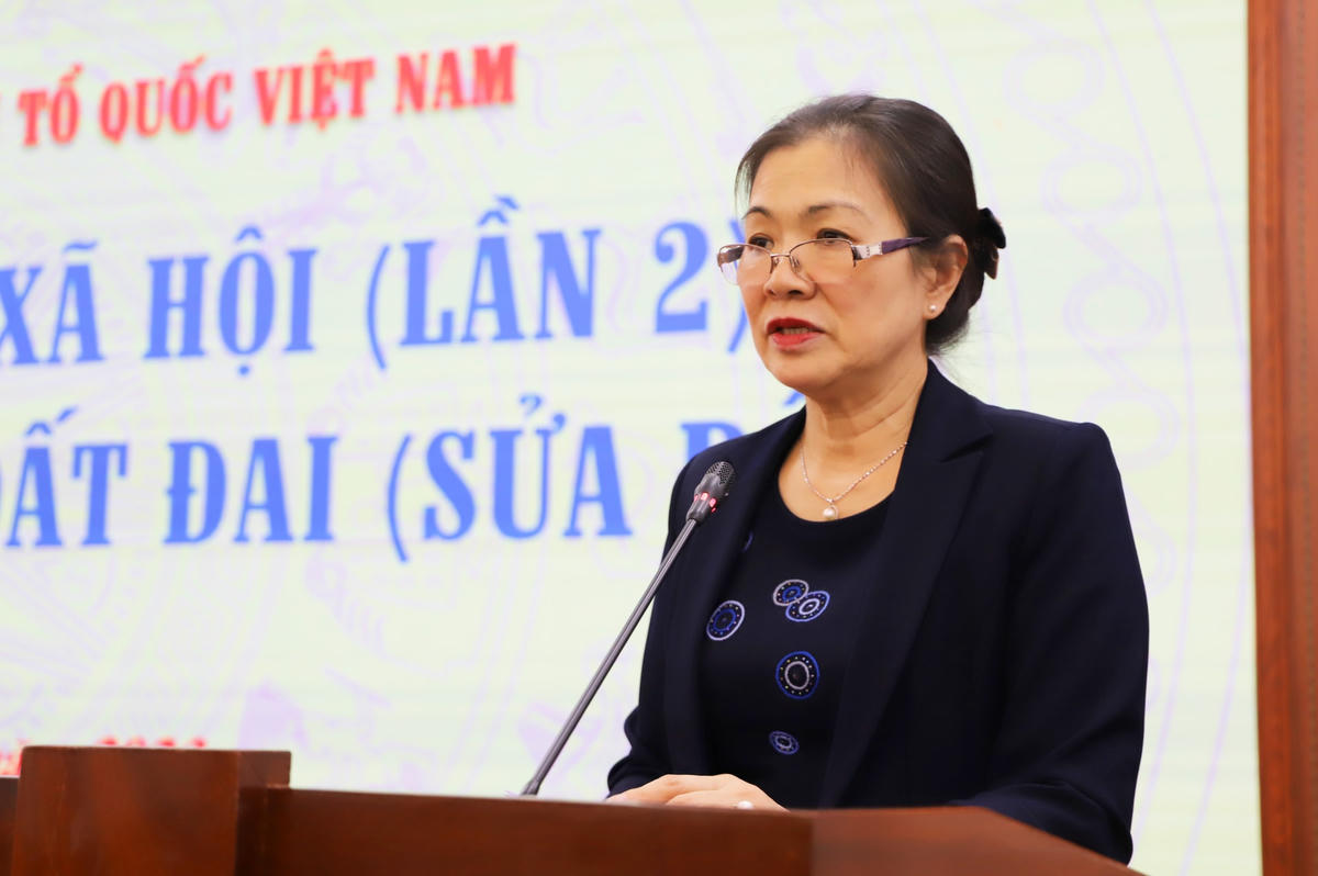 Chiều 27/4, tại Hà Nội, Ban Thường trực UBTƯ MTTQ Việt Nam tổ chức Hội nghị phản biện xã hội (lần 2) đối với dự thảo Luật Đất đai (sửa đổi). Chủ trì Hội nghị có bà Trương Thị Ngọc Ánh, Phó Chủ tịch UBTƯ MTTQ Việt Nam; GS.TS Trần Ngọc Đường, Chủ nhiệm Hội đồng Tư vấn Dân chủ và Pháp luật (UBTƯ MTTQ Việt Nam).