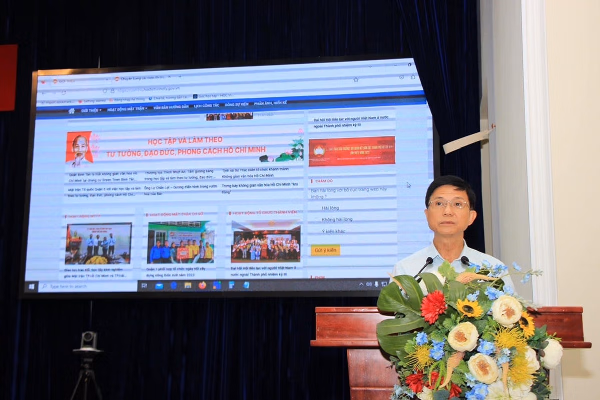 Ngày 1/8, Ủy ban MTTQ Việt Nam TP HCM đã tổ chức công bố giao diện mới Trang thông tin điện tử và triển khai Hội thi “Tiếp bước truyền thống - Xây dựng tương lai” năm 2023. Tham dự có bà Trần Kim Yến, Chủ tịch Ủy ban MTTQ Việt Nam TP HCM; ông Lâm Đình Thắng, Giám đốc Sở Thông tin - Truyền thông TP HCM.