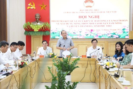 Ngày 24/10, Đoàn công tác của Ủy ban Trung ương MTTQ Việt Nam do đồng chí Hoàng Công Thủy - Phó Chủ tịch Ủy ban Trung ương MTTQ Việt Nam, Thành viên Ban chỉ đạo Trung ương các chương trình mục tiêu Quốc gia làm trưởng đoàn đã có chương trình làm việc với Ủy ban MTTQ tỉnh về thẩm tra kết quả lấy ý kiến sự hài lòng của người dân về xây dựng nông thôn mới (NTM) của các huyện Tam Nông, Thanh Ba, tỉnh Phú Thọ.