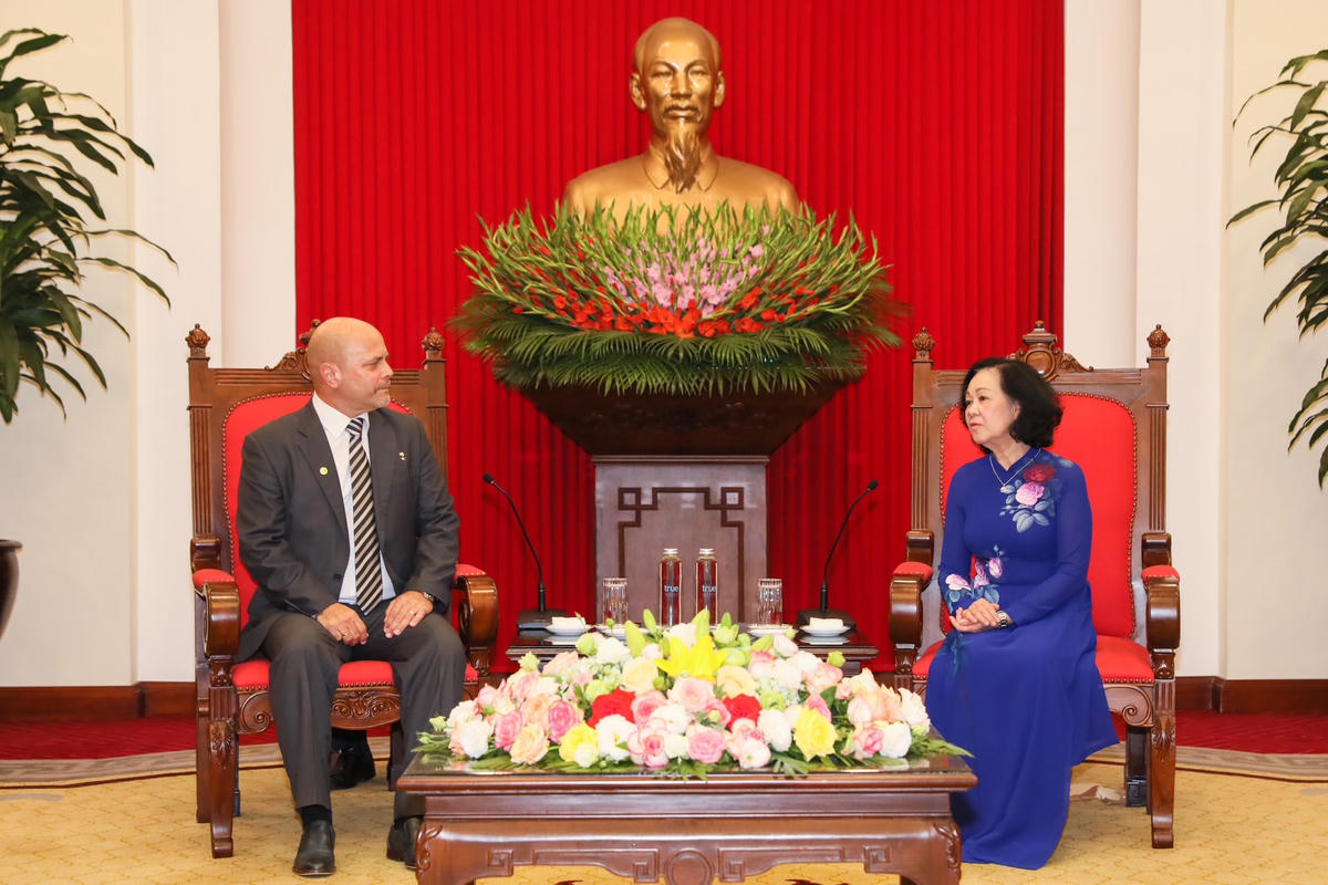 Chiều 17/5, tại Trụ sở Trung ương Đảng, Ủy viên Bộ Chính trị, Thường trực Ban Bí thư Trương Thị Mai đã tiếp thân mật Đoàn đại biểu cấp cao Ủy ban Bảo vệ Cách mạng Cuba do ông Gerardo Hernandez Nordelo, Ủy viên Trung ương Đảng Cộng sản Cuba, Chủ tịch Ủy ban Bảo vệ Cách mạng Cuba làm Trưởng đoàn sang thăm làm việc tại Việt Nam.