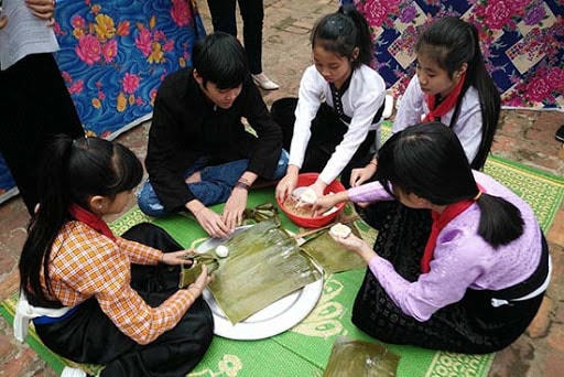 Tiếp theo là chuẩn bị nhân, tẩm ướp thịt băm theo đúng khẩu vị sao cho có vị ngọt đậm và dậy mùi hạt tiêu; đỗ xanh nấu chín được tách vỏ, để sẵn ra bát. Nếu như muốn làm bánh nhân ngọt thì được làm bằng hạt đậu đen, hoặc đậu xanh được nấu chín rồi giã nhuyễn, cho ra bát và trộn với đường. Lá dùng để gói bánh là loại lá chuối rừng hoặc lá chuối tây. Sau khi cắt thành từng tấm, đem hong qua lá chuối trên bếp lửa hoặc phơi nắng để cho mềm dai và dễ gói.