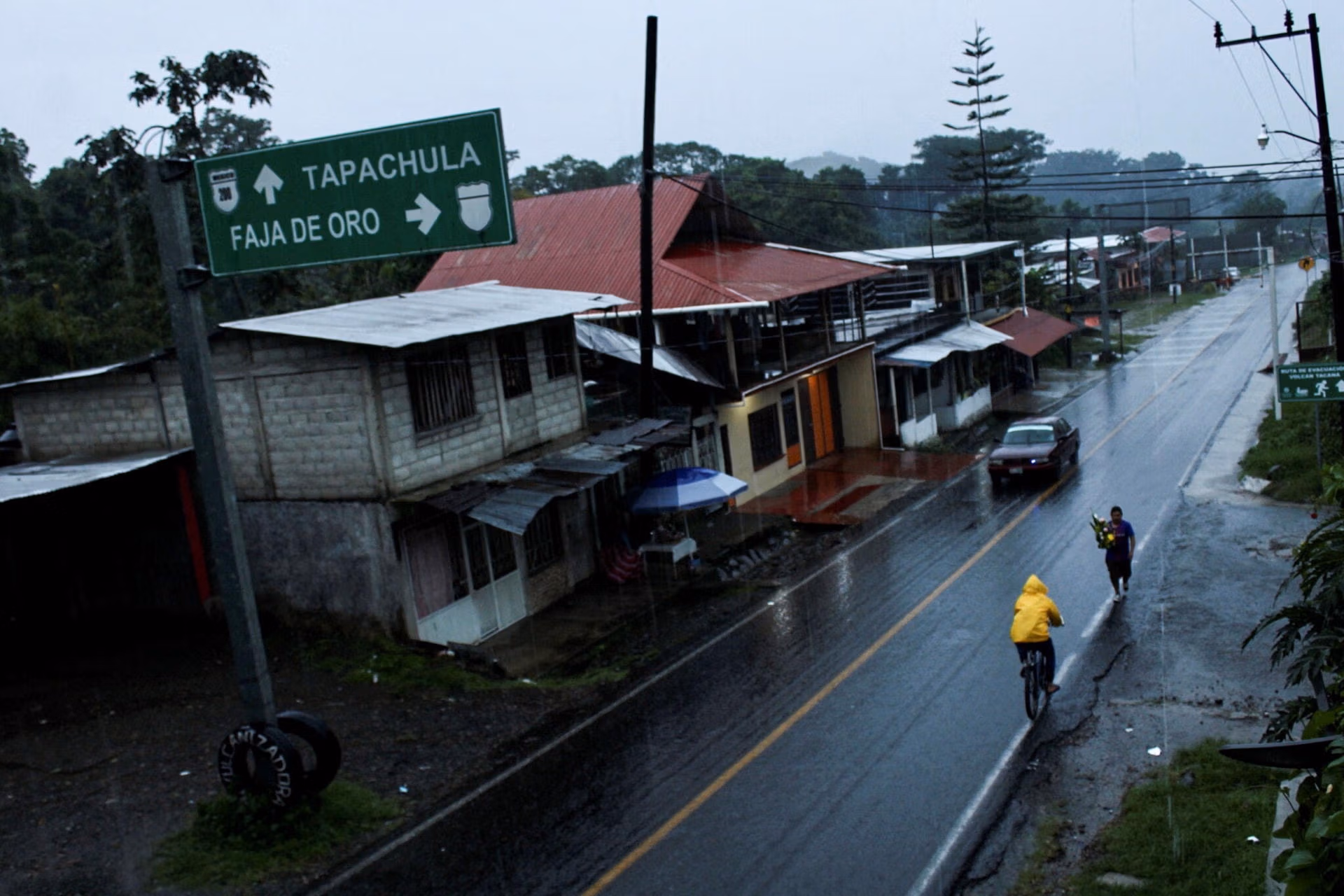 Làn nước nâu của sông Tonameca đã tràn tới cửa kính của những chiếc ô tô đang đậu và những chiếc xe buýt nhỏ được sử dụng cho giao thông địa phương.