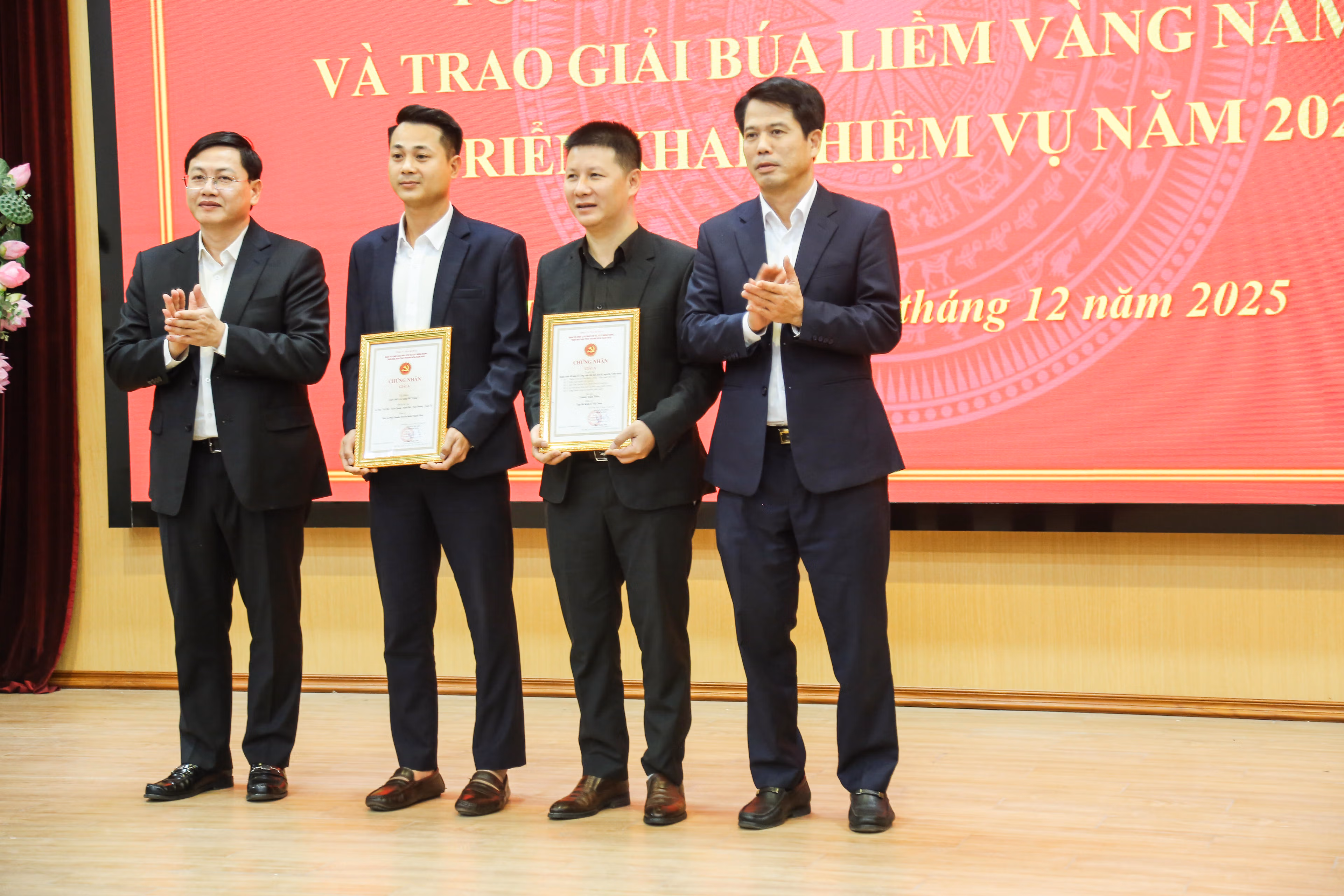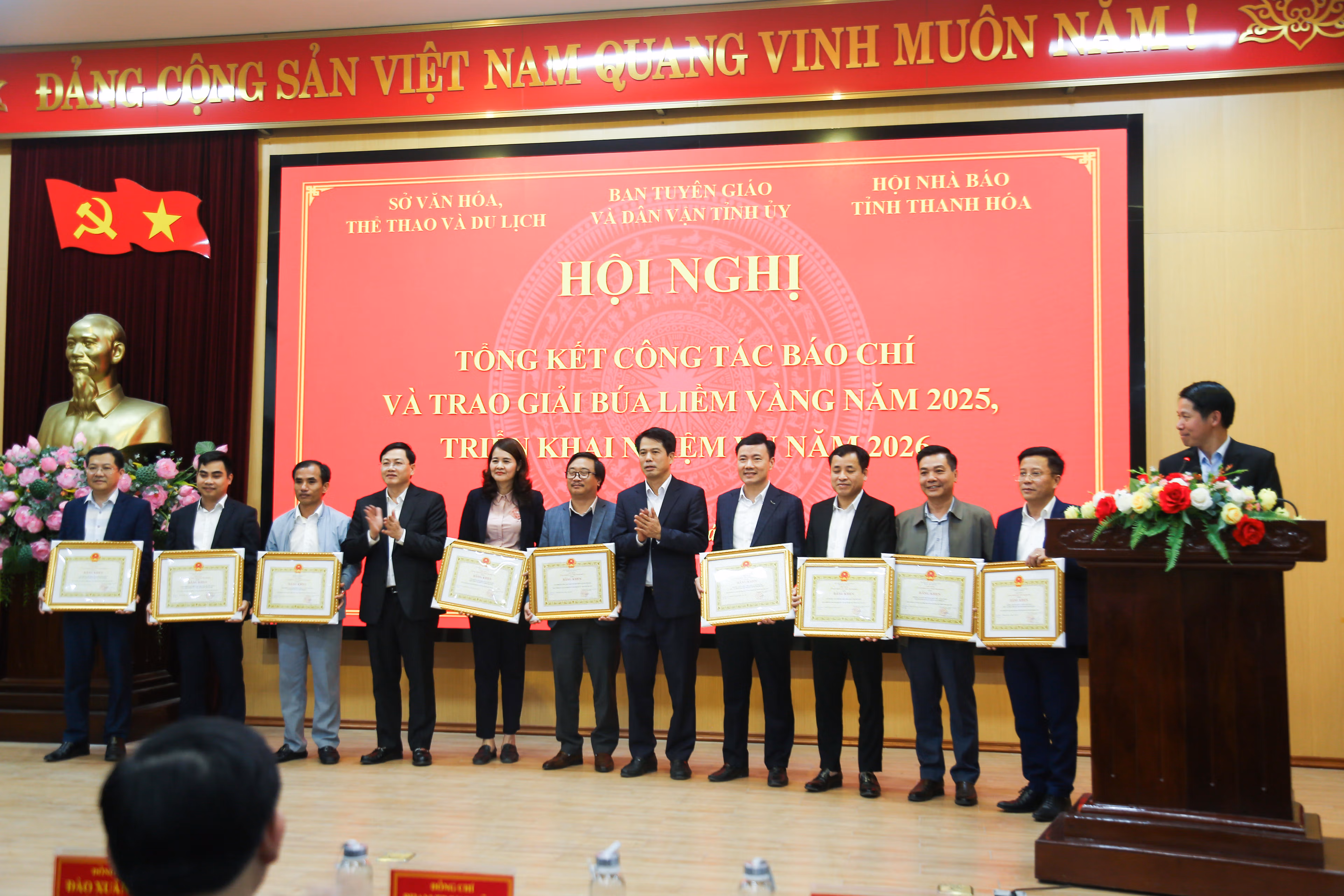 Chiều 26/12, tại phường Hạc Thành, Ban Tuyên giáo và Dân vận Tỉnh ủy phối hợp với Sở Văn hóa, Thể thao và Du lịch, Hội Nhà báo tỉnh Thanh Hóa tổ chức hội nghị tổng kết công tác báo chí và trao giải búa liềm vàng năm 2025, triển khai nhiệm vụ trọng tâm năm 2026.