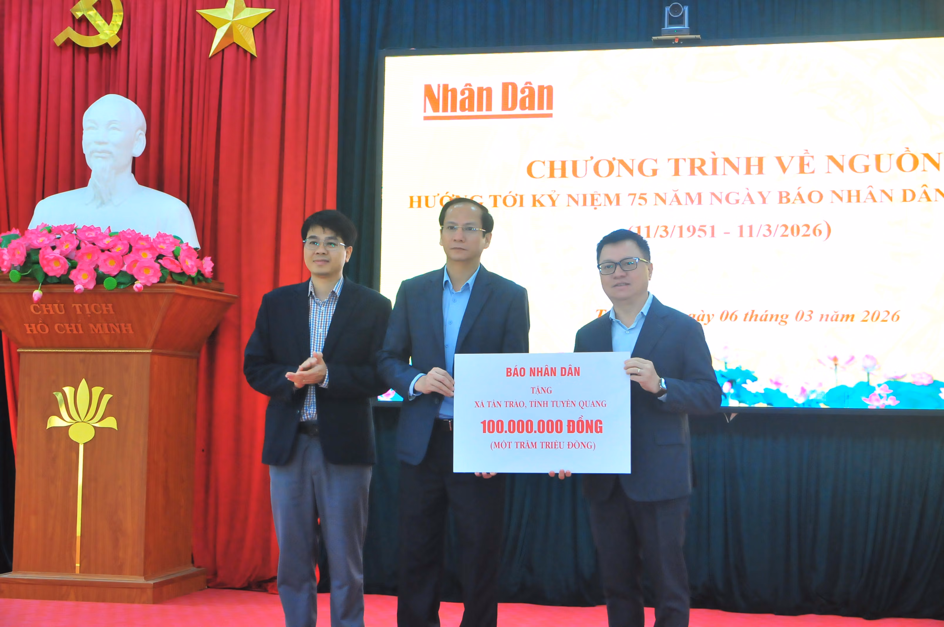 Nhân dịp này, Báo Nhân Dân đã trao 100 triệu đồng hỗ trợ xã Tân Trào thực hiện các chương trình an sinh xã hội, đồng thời tặng 250 suất quà cho các gia đình chính sách và hộ dân có hoàn cảnh khó khăn trên địa bàn.