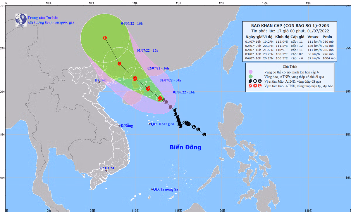 Từ ngày 30/6, áp thấp nhiệt đới trên khu vực Bắc Biển Đông đã mạnh lên thành bão, cơn bão số 1 năm 2022 và có tên quốc tế là Chaba.
