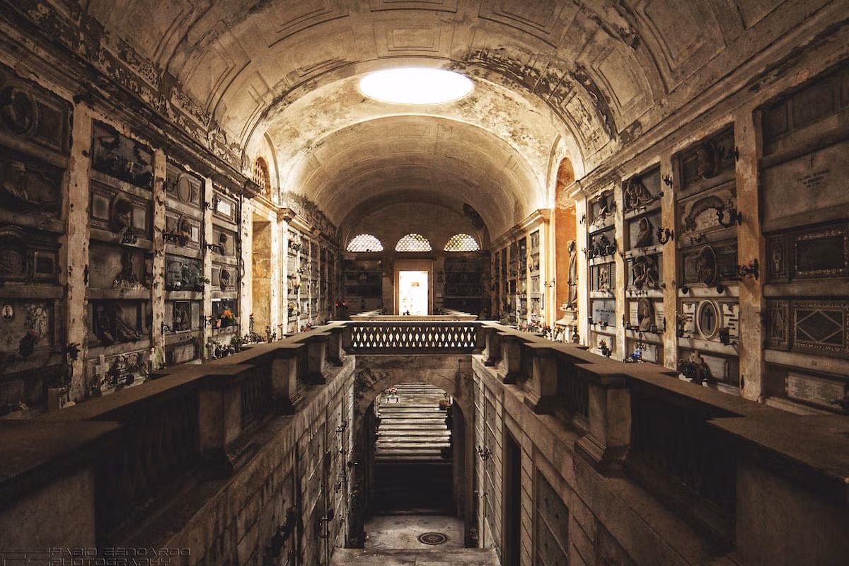 Nhưng đến năm 1835, đại dịch tả tại Ý bùng phát và khiến rất nhiều người qua đời. Số lượng người tử vong nhiều tới mức thi thể xếp đầy đường vì không thể tìm nổi chỗ chôn. Đó cũng là lúc kế hoạch xây dựng một nghĩa trang lớn ở ngoại ô thị trấn được chính quyền thành phố thông qua.
