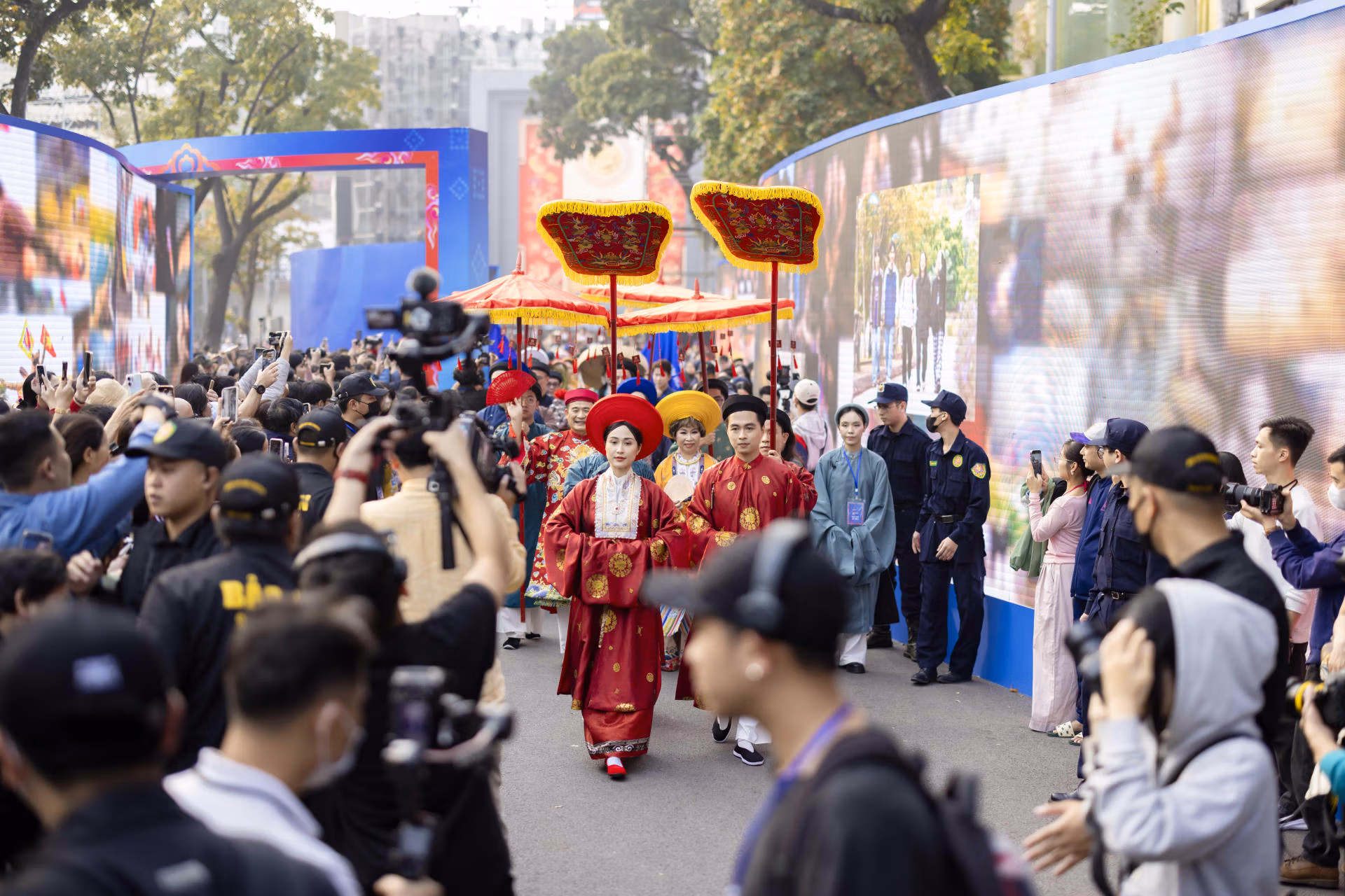 Tâm điểm của buổi chiều 7/12 là Lễ hội Việt phục, nơi hàng nghìn người tham dự được sống lại không gian văn hóa Hà Nội qua các thời kỳ qua màn tái hiện đám cưới truyền thống và những nét đẹp nếp sống xưa. Với vai trò đồng tổ chức, Bảo Tín Mạnh Hải góp phần lan tỏa giá trị văn hóa dân tộc, khẳng định rằng vàng 24K không chỉ là tài sản tích lũy mà còn là một phần của các nghi lễ, phong tục và đời sống văn hóa Việt.