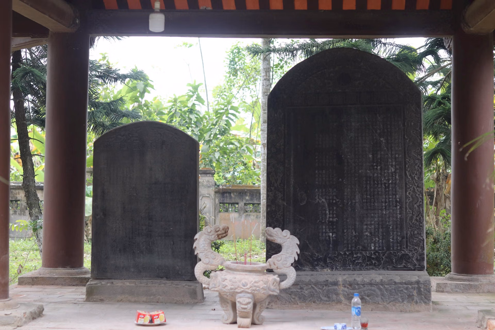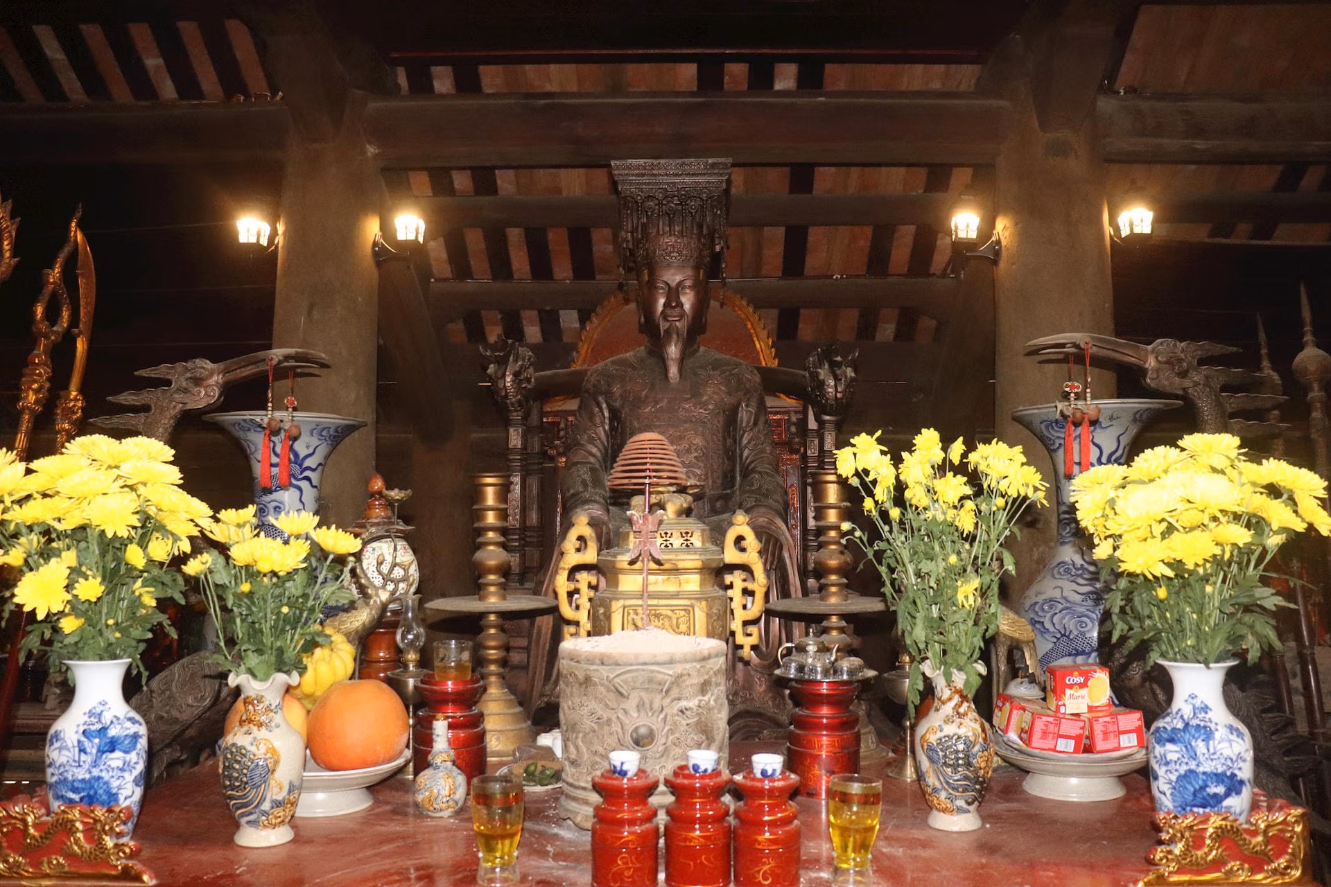 Báu vật trong di tích quốc gia đặc biệt Thứ Hai 25/03/2024 11:02 (GMT+7) Bên trong di tích quốc gia đặc biệt đền Lê Hoàn, hiện có đôi đũa, chén bạc và đĩa trắng cổ có niên đại lên tới hàng nghìn năm. Đền Lê Hoàn nằm ở cuối làng Trung Lập, xã Xuân Lập, huyện Thọ Xuân (Thanh Hóa), được xếp hạng di tích quốc gia đặc biệt tháng 12/2018. Ảnh: Đình Minh.Theo sử sách, Lê Hoàn sinh năm Tân Sửu (941) trong một gia đình nông dân nghèo tại làng Trung Lập ngày nay. Cha là Lê Mịch, mẹ là Đặng Thị. Trong ảnh là cổng chính dẫn vào đền Lê Hoàn được tạc bằng đá. Ảnh: Đình Minh.Lớn lên, Lê Hoàn phò tá giúp Đinh Tiên Hoàng dẹp loạn 12 sứ quân, được phong Thập đạo tướng quân. Mùa Đông năm Kỷ Mão (979), vua Đinh và con cả Đinh Liễn bị Đỗ Thích sát hại, Lê Hoàn được cử làm nhiếp chính, giúp ấu chúa nhà Đinh giữ yên biên cương xã tắc, dẹp tan nội phản, được Thái hậu Dương Vân Nga trao long bào. Trong ảnh là nghinh môn đền Lê Hoàn thiết kế ba gian, mái ngói rêu phong, cổ kính Ảnh: Đình Minh.Năm Canh Thìn (980) Lê Hoàn lên ngôi hoàng đế, đặt niên hiệu là Thiên Phúc. Vua đánh tan quân Tống giữ yên bờ cõi, chinh phạt Chiêm Thành, cho đúc tiền Thiên Phú, chú trọng đến việc phát triển nông nghiệp, tiểu thủ công nghiệp, thương mại... Ảnh: Đình Minh.Sau khi vua mất, để tưởng nhớ công lao của ông, dân làng Trung Lập dựng một ngôi miếu nhỏ bằng tre lá ngay trên mảnh đất mẹ con vua từng ở để phụng thờ. Thời vua Lý Thái Tổ cho dựng lại miếu và đến thời Hồng Đức triều vua Lê Thánh Tông (1442-1497) cho xây dựng đền quy mô như hiện nay. Ảnh: Đình Minh.Theo UBND xã Xuân Lập, trải qua bao biến cố của lịch sử, sự khắc nghiệt của thiên nhiên, ngôi đền đã nhiều lần được trùng tu, tôn tạo nhưng vẫn giữ nguyên vẹn kiến trúc xưa. Ảnh: Đình Minh.Đền thờ vua Lê có phong cách kiến trúc theo kiểu đền thờ truyền thống của người Việt Mường cổ, hệ vì kèo đặc trưng gồm giá chiêng, chồng rường, con nhị, theo lối dầm đỡ chống nóc, tạo liên kết vững chắc cho ngôi đền. Ảnh: Đình Minh.Tượng vua Lê Hoàn bằng đồng được đặt chính giữa toà hậu điện. Ảnh: Đình Minh.Bên trong toà hậu điện còn thờ Thái hậu Đặng Thị - mẹ vua, Trường Hưng vương Lê Mịch - cha vua, vua Lê Long Đĩnh - con trai, gian chái phía Tây thờ thái hậu Dương Vân Nga - vợ vua. Ảnh: Đình Minh.Các hiện vật niên đại cả nghìn năm được lưu giữ tại đền vua Lê Hoàn. Ảnh: Đình Minh.Trong số này, đáng chú ý nhất là đôi đũa thử độc làm bằng hợp kim màu bạc. Kế bên là ba chiếc chén bạc được cho là của nhà vua và sử dụng cùng đôi đũa. Ảnh: Đình Minh.Cùng với đó là chiếc đĩa cổ niên đại hơn 1.000 năm làm bằng đá trắng tại đền Lê Hoàn. Ảnh: Đình Minh.Các kết cấu gỗ được chạm khắc hoa văn hình rồng tinh xảo tại ngôi đình. Ảnh: Đình Minh.Ngôi đền cổ có thiết kế mái vẩy, cong với các lớp ngói mũi hài đều tăm tắp. Ảnh: Đình Minh.Tại khuôn viên đền thờ còn hai tấm bia cổ được tạc dựng vào những năm đầu thế kỷ XVII. Ảnh: Đình Minh.Để tỏ làng thành kính và bảo tồn di tích, người dân địa phương thường xuyên vào bên trong ngôi đền để dọn dẹp. Ảnh: Đình Minh. Đình Minh