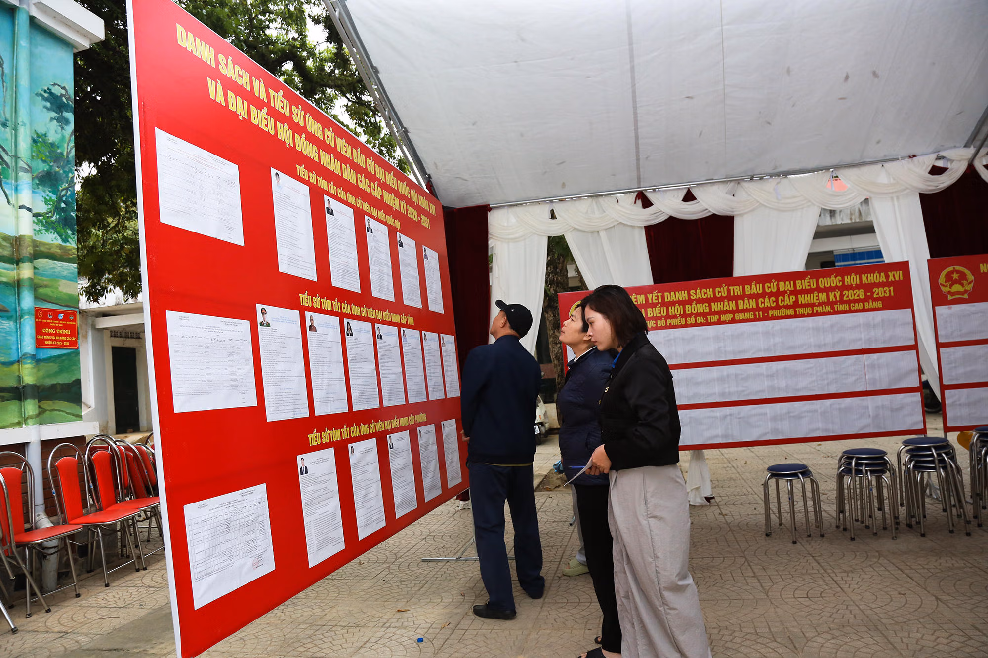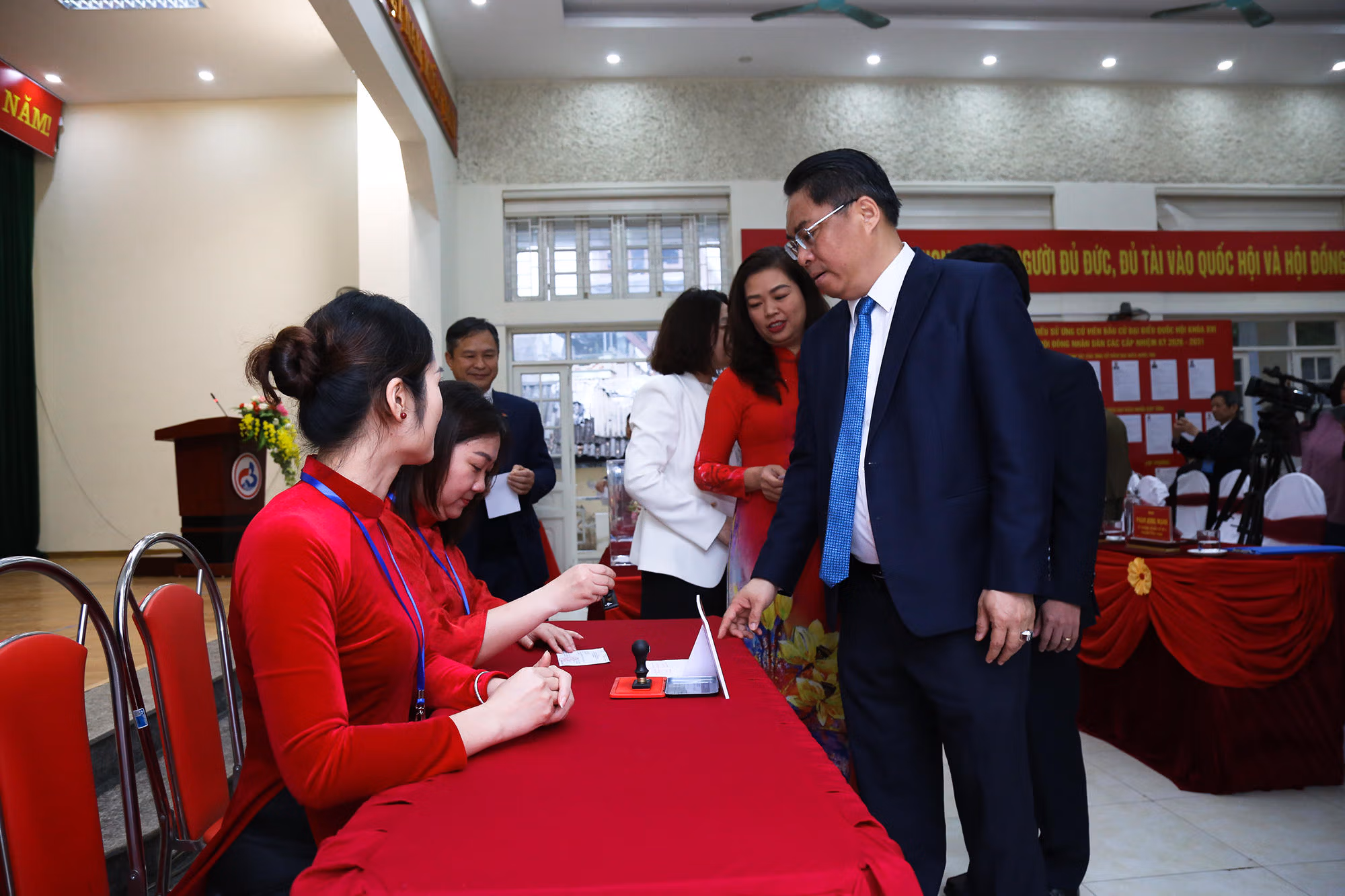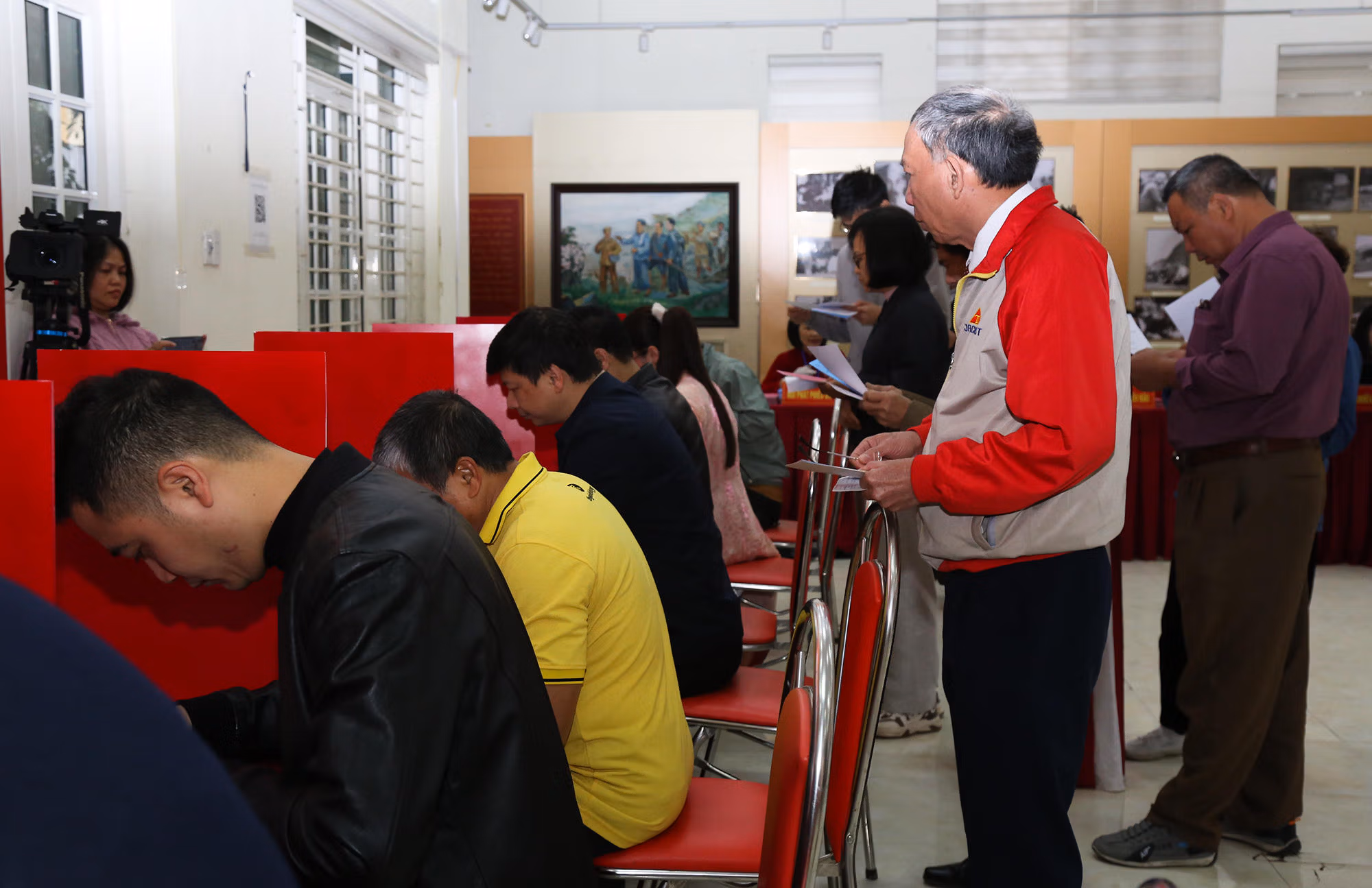 Ông Phan Thăng An - Ủy viên Trung ương Đảng, Bí thư Tỉnh ủy Cao Bằng và người dân liên tổ Hợp Giang 10, 11, 12 (phường Thục Phán) có mặt từ 7h sáng tại điểm bỏ phiếu số 04, đơn vị bầu cử số 02 để thực hiện quyền cử tri, bầu ra những đại biểu đại diện cho tiếng nói của người dân.