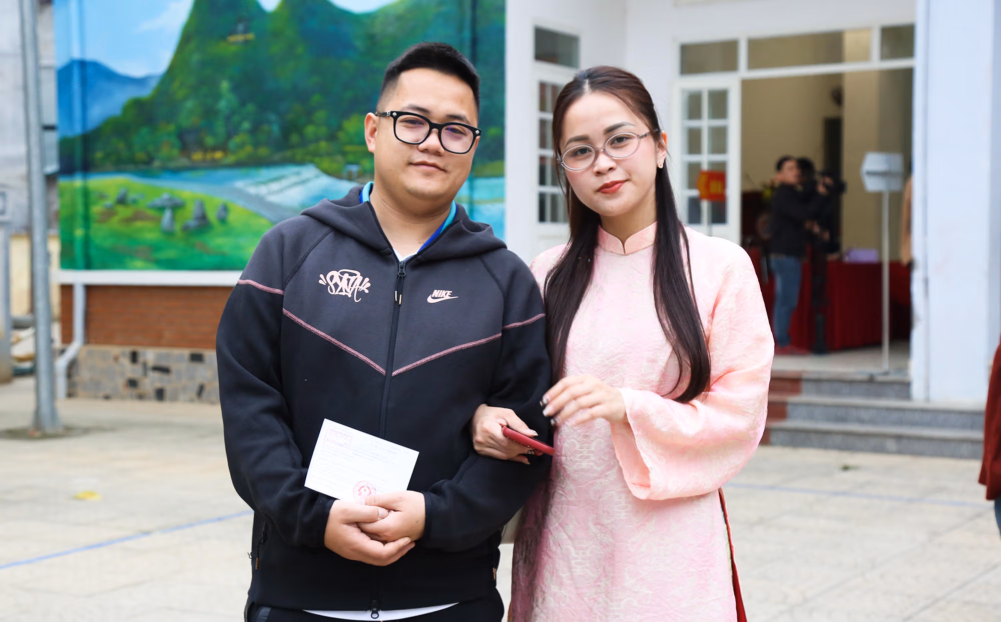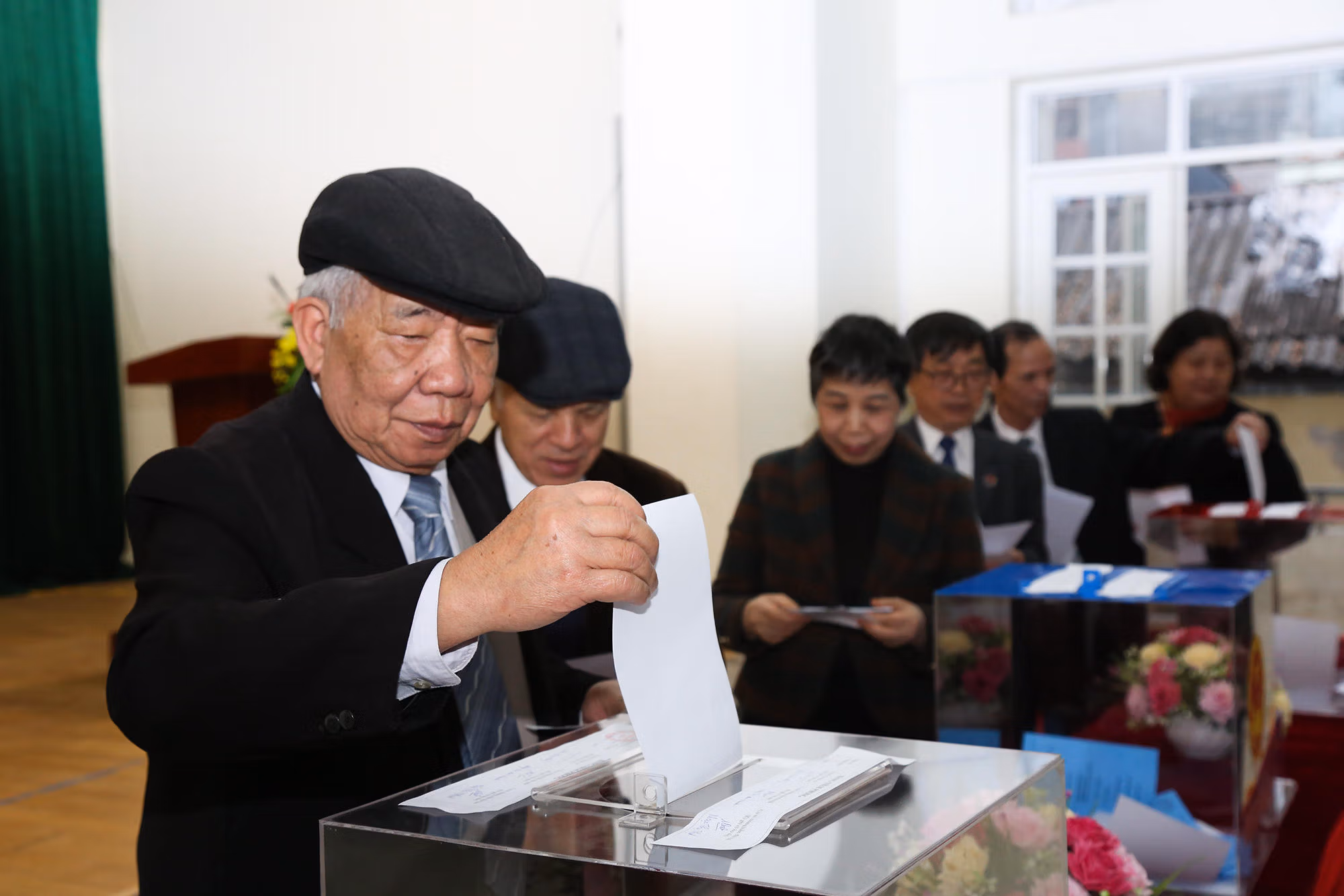 Bí thư Tỉnh ủy Cao Bằng cùng người dân phường Thục Phán thực hiện bỏ phiếu