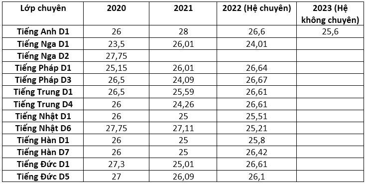 Điểm chuẩn Trường chuyên Ngoại ngữ (Trường Đại học Ngoại ngữ - Đại học Quốc gia Hà Nội: