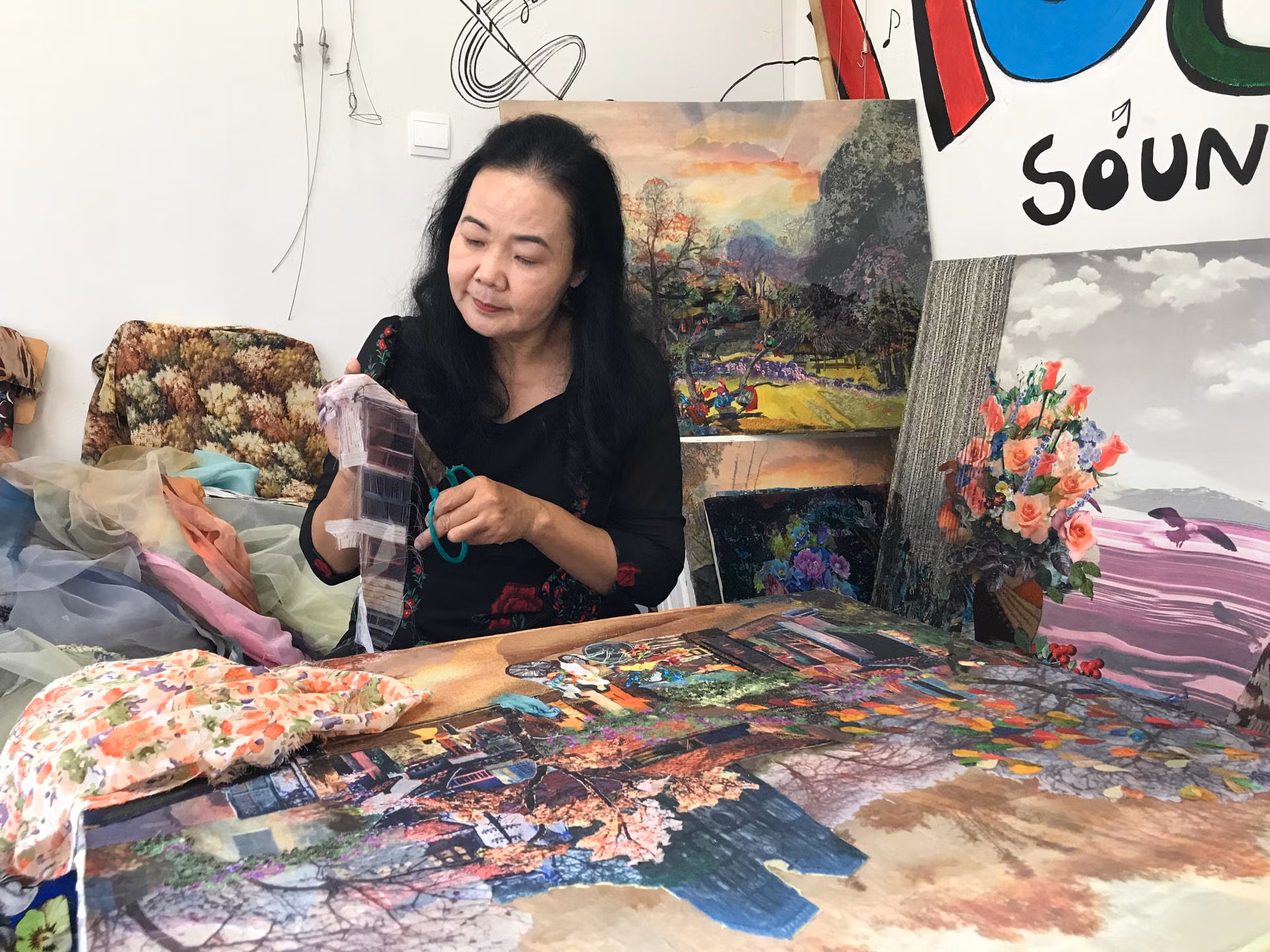 Tranh cắt vải của họa sĩ Thanh Thục.