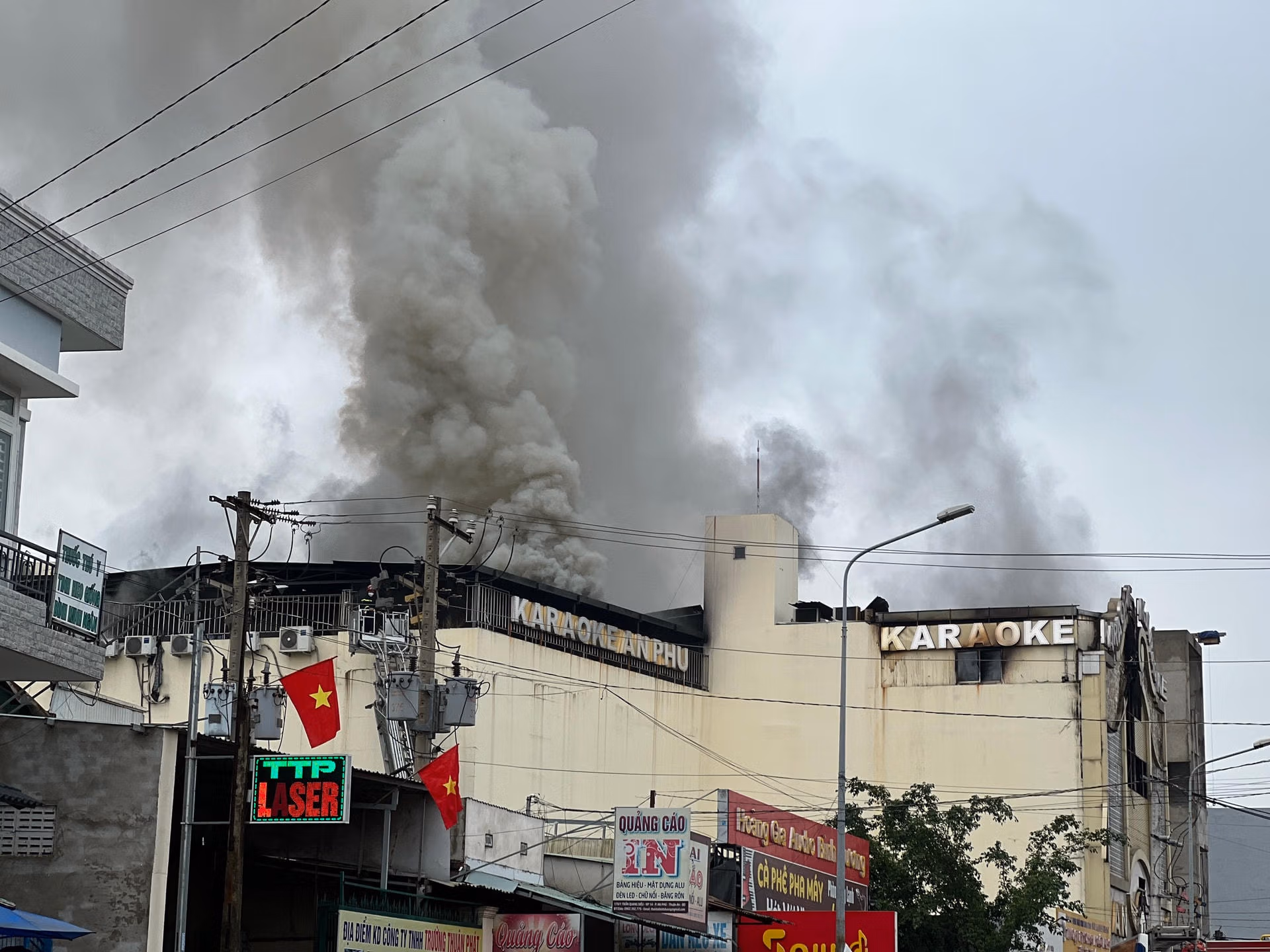 Vào lúc 20h48 ngày 6/9/2022, ngọn lửa bùng phát mạnh tại cơ sở Kinh doanh Karaoke An Phú (P An Phú, TP Thuận An, tỉnh Bình Dương). Sau khi nhận được tin báo vụ cháy, Công an tỉnh đã điều động lực lượng, phương tiện chuyên dụng của Cảnh sát PCCC và cứu nạn cứu hộ Công an tỉnh và các lực lượng chức năng có liên quan đến hiện trường để tổ chức cứu nạn, triển khai các chiến thuật chữa cháy tìm kiếm người bị nạn, huy động lực lượng bảo vệ an ninh trật tự nơi xảy ra cháy.