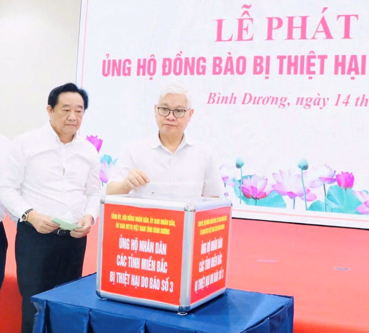 Trước đó, ngày 10/9, tại Hà Nội, Đảng bộ, chính quyền và nhân dân tỉnh Bình Dương đã ủng hộ số tiền 10 tỷ đồng hỗ trợ đồng bào 10 tỉnh miền Bắc bị thiệt hại do cơn bão số 3 gây ra.