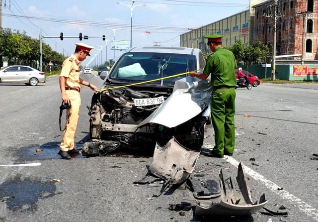 Khi đến đoạn giao với đường N1 thì tài xế cho xe dừng để chuẩn bị qua đường. Đúng lúc này, xe tải thư báo chạy phía sau lao tới tông trúng khiến xe ô tô du lịch văng sang làn đường ngược lại.