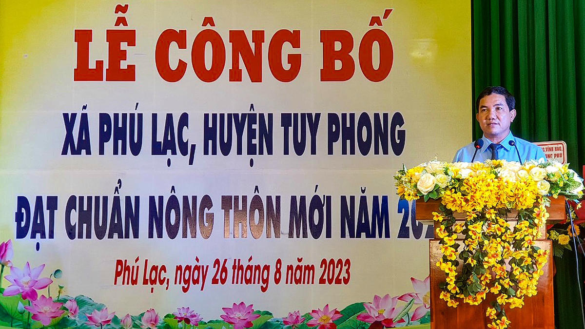 Nhân dịp này, ông Nguyễn Hữu Phước, Phó Giám đốc Sở Nông nghiệp và PTNT tỉnh, Chánh văn phòng điều phối Nông thôn mới tỉnh Bình Thuận đã trao Bằng công nhận và Quyết định xã đạt chuẩn NTM của UBND tỉnh Bình Thuận cho Đảng bộ, chính quyền và Nhân dân xã Phú Lạc, UBND xã Phú Lạc củng tặng Giấy khen cho 6 tập thể và 13 cá nhân có thành tích xuất sắc trong phong trào chung tay xây dựng NTM.