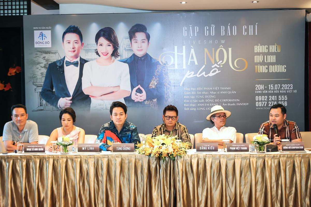 Xuất hiện tại họp báo liveshow "Hà Nội phố", các ca sĩ Bằng Kiều, Mỹ Linh, Tùng Dương cùng nhạc sĩ Anh Quân và các nghệ sĩ trong ekip chương trình đã có những chia sẻ thú vị về quá trình chuẩn bị cho liveshow đặc biệt này.