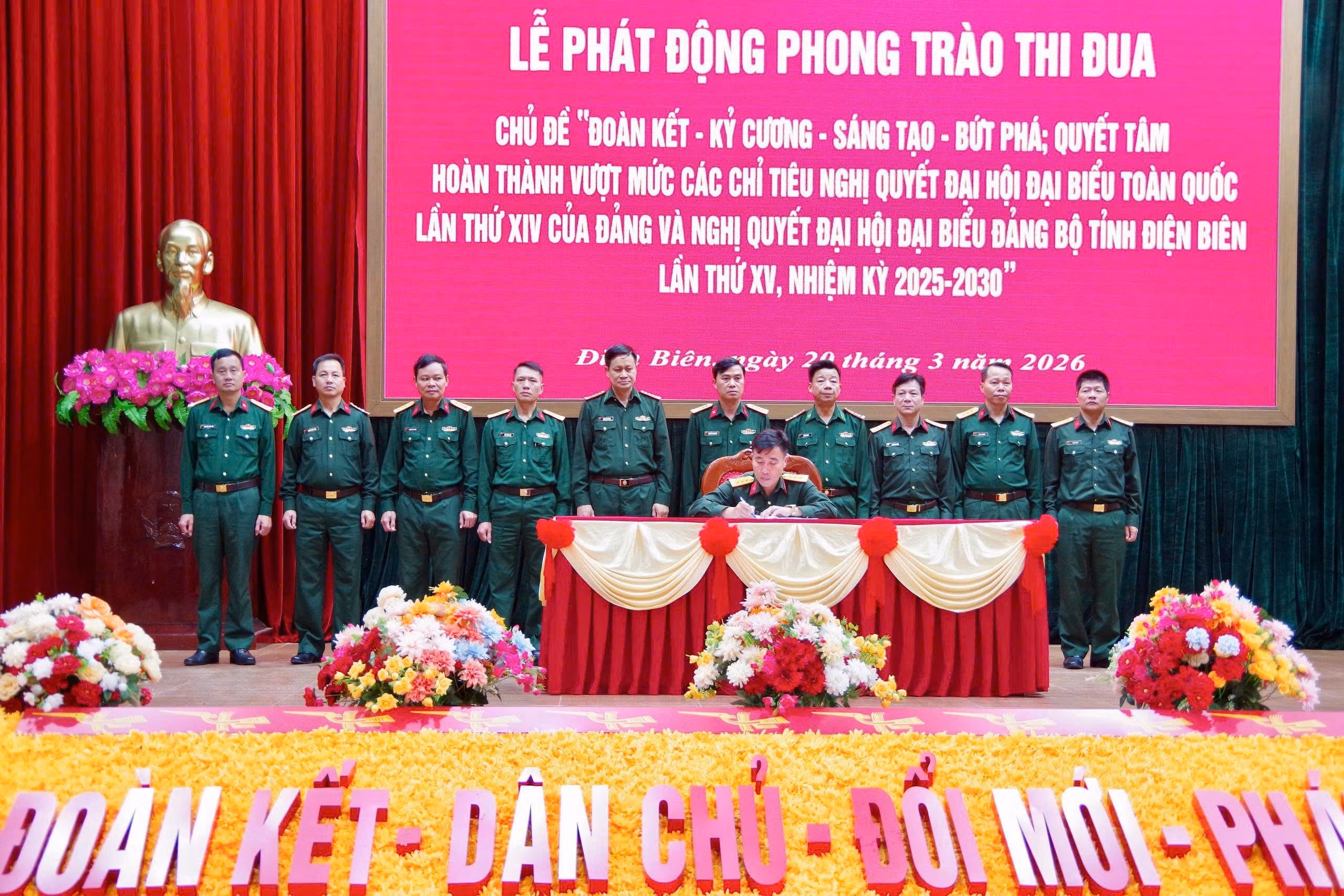 Ngày 20/3, Đảng ủy, Bộ Chỉ huy quân sự tỉnh Điện Biên phát động phong trào thi đua yêu nước với chủ đề: Đoàn kết - Kỷ cương - Sáng tạo - Bứt phá; Quyết tâm hoàn thành vượt mức các chỉ tiêu Nghị quyết Đại hội đại biểu toàn quốc lần thứ XIV của Đảng và Nghị quyết Đại hội đại biểu Đảng bộ tỉnh Điện Biên lần thứ XV, nhiệm kỳ 2025 - 2030.