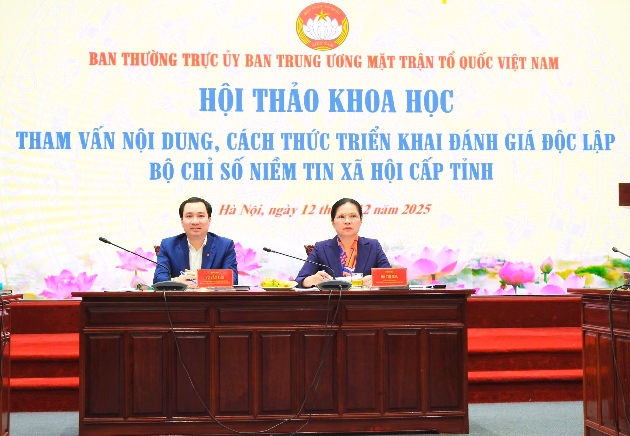 Thực hiện ý kiến chỉ đạo của Tổng Bí thư Tô Lâm tại Đại hội Đảng bộ Mặt trận Tổ quốc, các đoàn thể Trung ương lần thứ I, nhiệm kỳ 2025-2030 về việc giao Ủy ban Trung ương Mặt trận Tổ quốc Việt Nam đánh giá độc lập Bộ chỉ số niềm tin xã hội cấp tỉnh, ngày 12/12, Ban Thường trực UBTƯ MTTQ Việt Nam tổ chức Hội thảo khoa học tham vấn nội dung, cách thức triển khai đánh giá độc lập bộ Bộ chỉ số niềm tin xã hội cấp tỉnh.