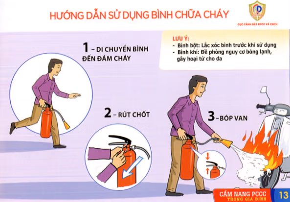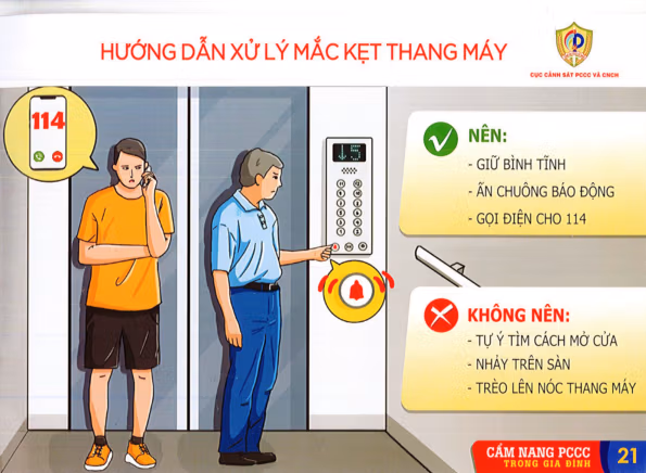 Nhằm bảo đảm an toàn PCCC và thoát nạn tại hộ gia đình, Cục Cảnh sát PCCC và CNCH cung cấp đến người dân một số biện pháp phòng cháy; quy trình xử lý khi xảy ra cháy; hướng dẫn sử dụng bình chữa cháy; giải pháp, kỹ năng thoát nạn; hướng dẫn thoát nạn tại chung cư; hướng dẫn xử lý mắc kẹt thang máy trong Cẩm nang PCCC trong gia đình. Cẩm nang được đăng tải trên Cổng TTĐT Bộ Công an. Một số hình ảnh từ cẩm nang: