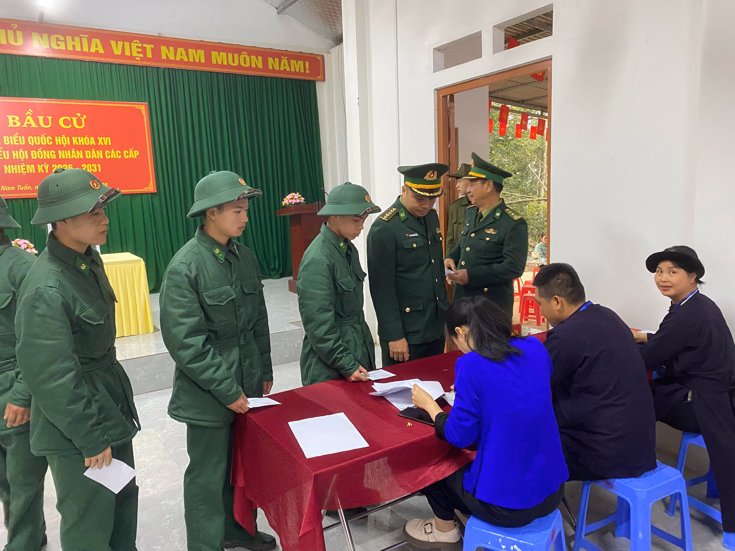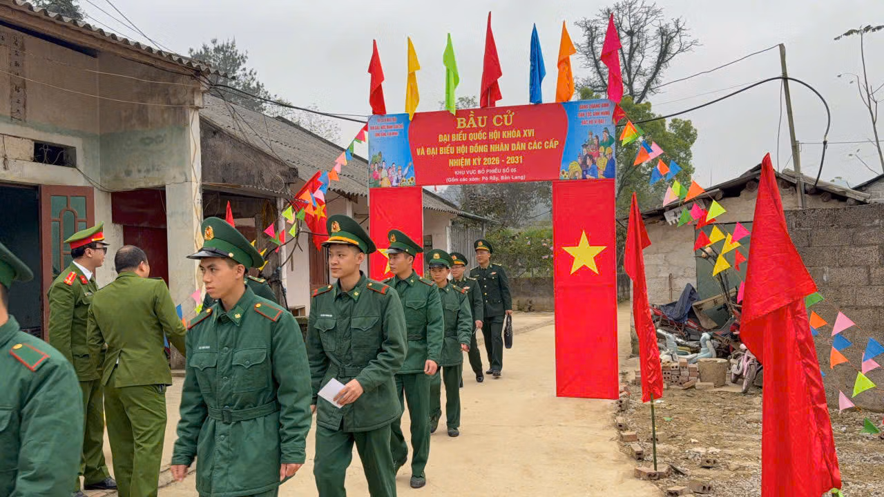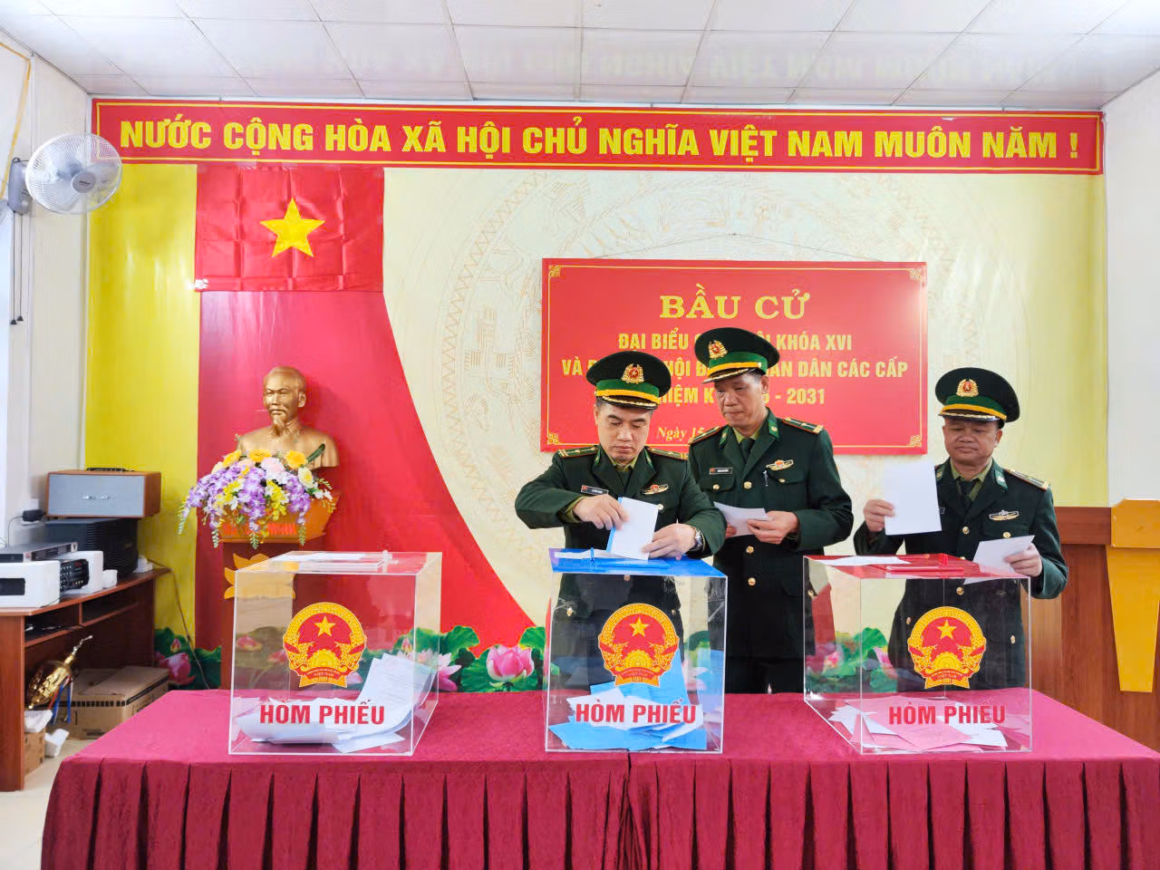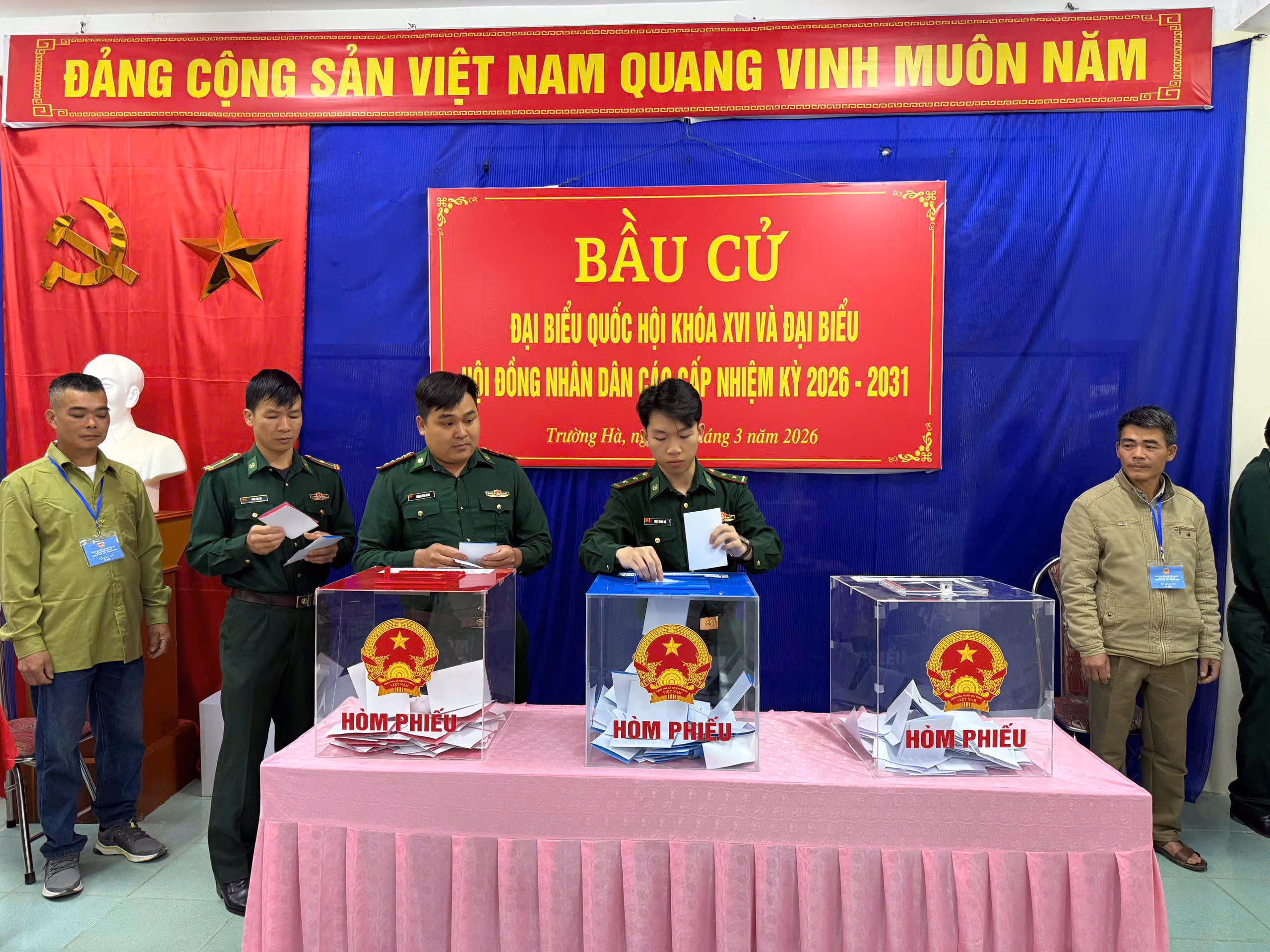 Bộ đội Biên phòng Cao Bằng nô nức tham gia Ngày hội bầu cử Chủ Nhật 15/03/2026 11:22 (GMT+7) Sáng 15/3, các cán bộ, chiến sĩ Bộ đội Biên phòng tỉnh Cao Bằng đã thực hiện quyền cử tri, bầu đại biểu Quốc hội khóa XVI và HĐND các cấp nhiệm kỳ 2026-2031. Từ sáng sớm, cán bộ, chiến sĩ tại 16 đồn Biên phòng trên tuyến biên giới tỉnh Cao Bằng tham gia bỏ phiếu tại các khu vực bầu cử ở thôn, xóm. Trong ảnh: Đồn trưởng, Chính trị viên và cán bộ, chiến sĩ Đồn Biên phòng Quang Long thực hiện quyền bầu cử.Trung tá Vũ Xuân Chiến - Đồn trưởng Đồn biên phòng Xuân Trường đi bỏ phiếu.Các chiến sĩ Đồn biên phòng Xuân Trường đọc tiểu sử các ứng viên để lựa chọn những người xứng đáng nhất.Đồn Biên phòng cửa khẩu Sóc Giang tổ chức cho cán bộ, chiến sĩ bầu cử tại Khu vực bỏ phiếu số 6, xóm Sóc Giang, xã Trường Hà.Đồn Biên phòng Đàm Thủy tổ chức cho cán bộ, chiến sĩ bầu cử tại Khu vực bỏ phiếu số 9, xóm Đồng Tâm - Bản Rạ, Bản Mom, xã Đàm Thủy.Cán bộ, chiến sĩ Đồn biên phòng Lũng Nặm bỏ phiếu tại tổ số 1 xã Lũng Nặm.Cán bộ Đồn biên phòng Cô Ba dự khai mạc bầu cử tại Tổ 6, xóm Nà Lùng, Nhà văn hóa xã Cô Ba.Cán bộ, chiến sĩ Đồn biên phòng cửa khẩu Trà Lĩnh di chuyển đến Khu vực bỏ phiếu số 5, xóm Bản Lang, xã Trà Lĩnh.Các chiến sĩ cầm trên tay thẻ cử tri, thực hiện quyền bỏ phiếu.Cán bộ, chiến sĩ Đồn biên phòng Ngọc Chung tham dự lễ khai mạc và bỏ phiếu tại Điểm bỏ phiếu số 08 xã Trùng Khánh (địa điểm tại xóm Đồng Tâm).Đồn Biên phòng Cốc Pàng dự khai mạc và bỏ phiếu tại khu vực bầu cử số 1, xã Cốc Pàng.Chiến sĩ mới Tiểu đoàn Huấn luyện - Cơ động tham gia bỏ phiếu tại Tổ bầu cử số 13 xã Nam Tuấn.Cán bộ, chiến sĩ Đồn biên phòng Đức Long tham gia bầu cử tại Điểm bỏ phiếu số 2 xã Đức Long. Hân Nguyễn