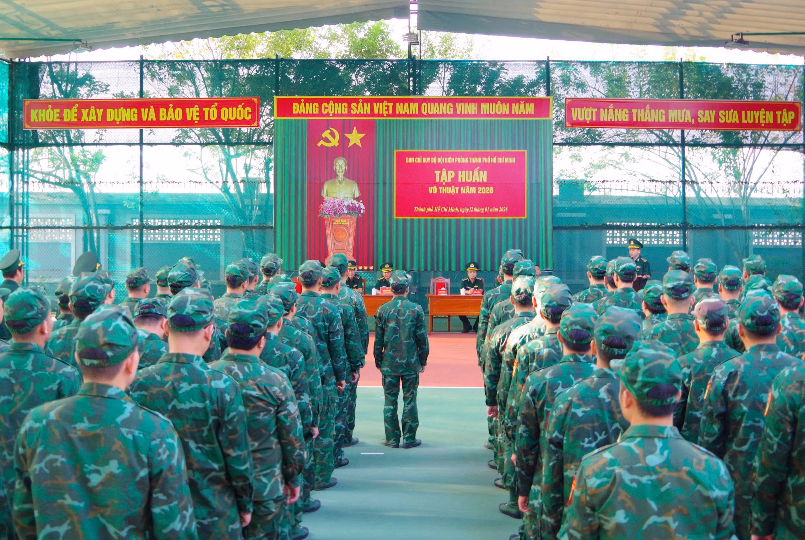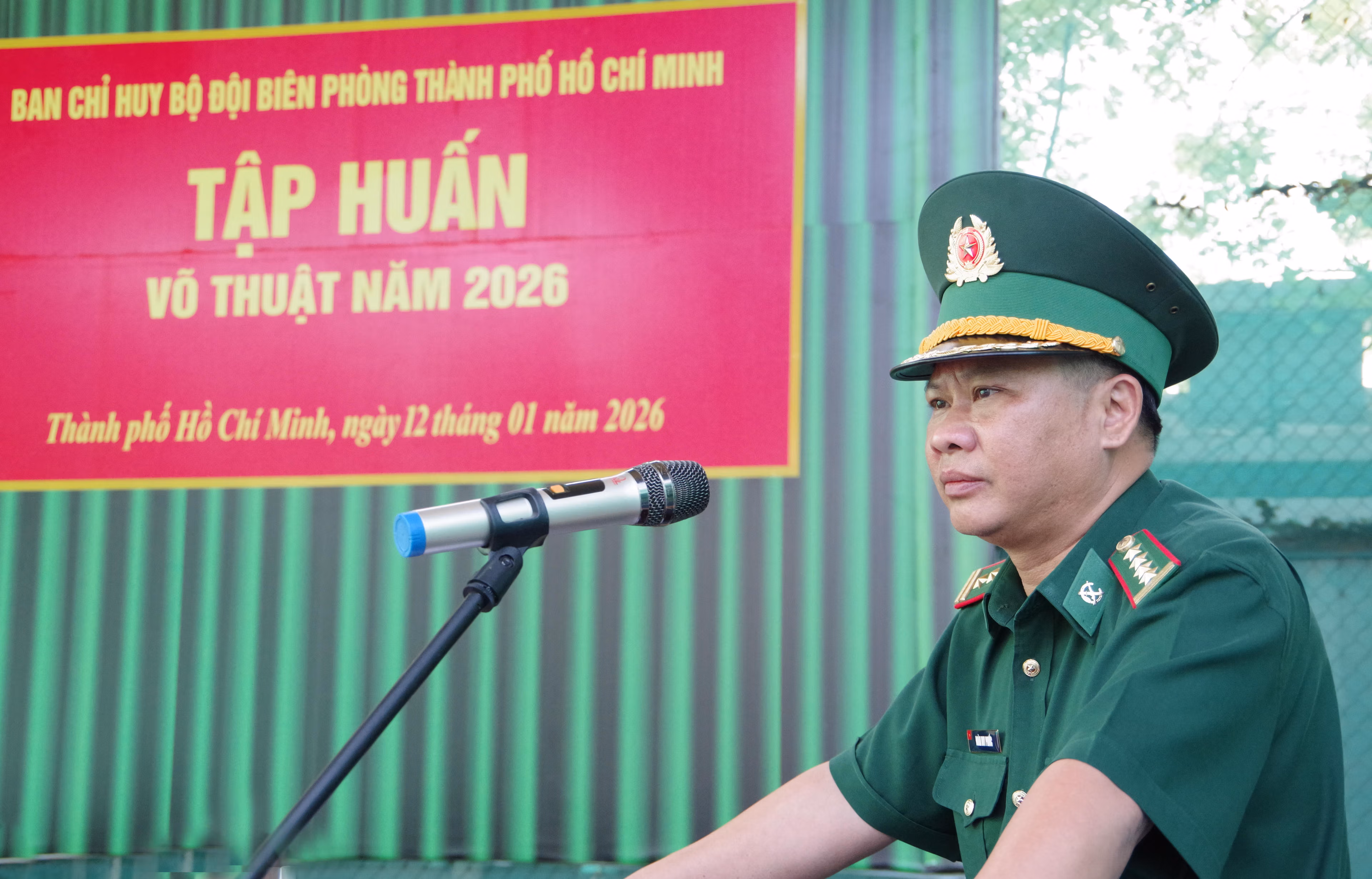 Ngày 12/1, Ban Chỉ huy Bộ đội Biên phòng (BĐBP) TP Hồ Chí Minh tổ chức Khai mạc tập huấn võ thuật năm 2026. Đại tá Đoàn Duy Phước, Phó Chỉ huy trưởng – Tham mưu trưởng BĐBP thành phố dự và chỉ đạo lớp tập huấn.