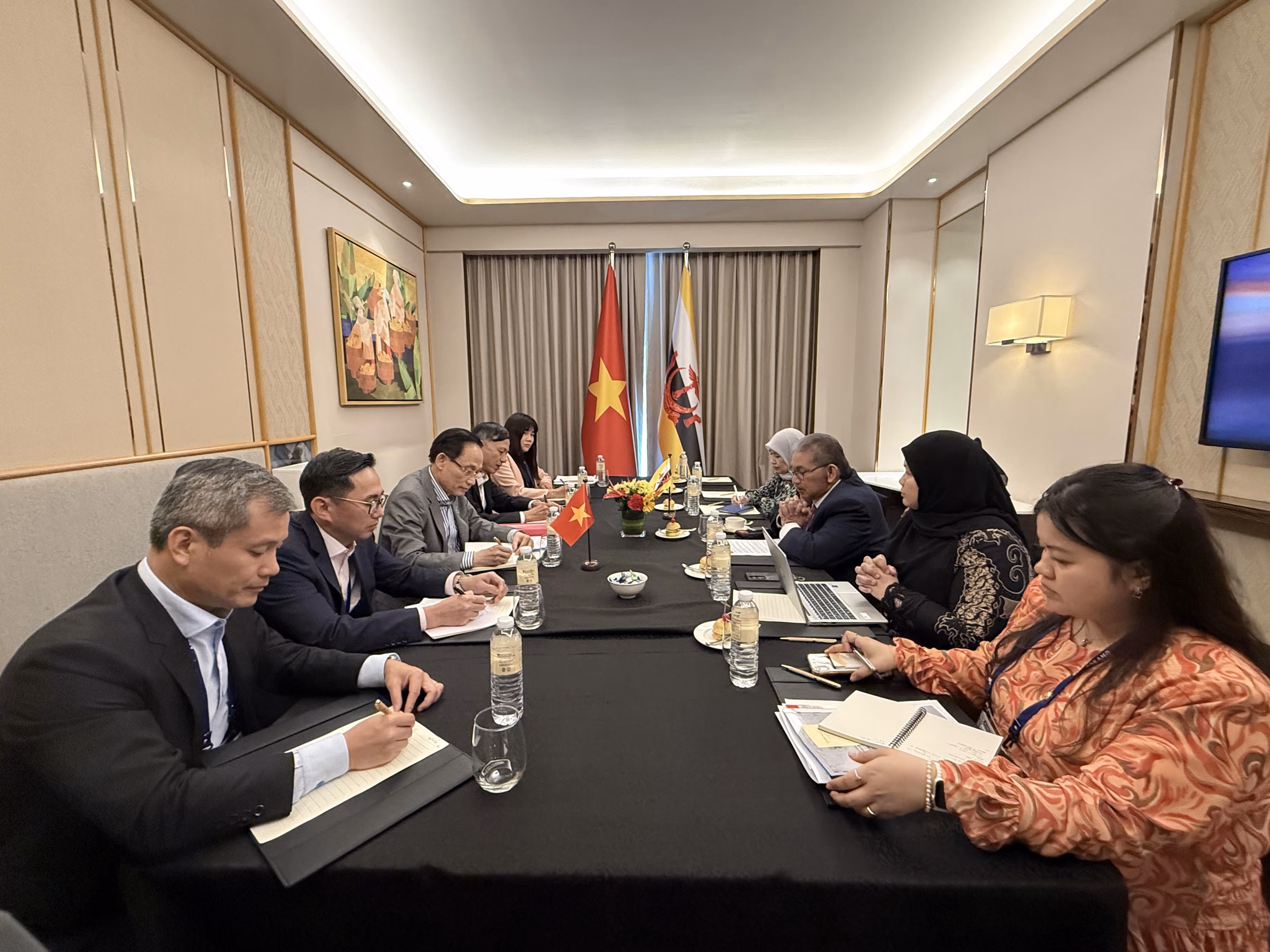Hai Bộ trưởng nhất trí tiếp tục duy trì triển khai các cơ chế hợp tác song phương, trong đó có tổ chức kỳ họp lần thứ 3 Ủy ban hỗn hợp về Hợp tác song phương Việt Nam - Brunei trong năm 2026; thực hiện hiệu quả Chương trình Hành động triển khai quan hệ Đối tác Toàn diện Việt Nam - Brunei Darussalam giai đoạn 2023-2027 và các cam kết thoả thuận đã ký kết; khai thác tối đa tiềm năng hợp tác giữa hai nước trong các lĩnh vực như kinh tế, dầu khí, nông nghiệp, thuỷ sản, Halal, văn hóa, du lịch và giao lưu nhân dân, phấn đấu đạt mục tiêu 1 tỷ đô la Mỹ kim ngạch thương mại năm 2030. Nhân dịp này, Bộ trưởng thứ hai Brunei chuyển lời của Quốc vương mời Tổng Bí thư Tô Lâm thăm cấp Nhà nước Brunei năm 2026.