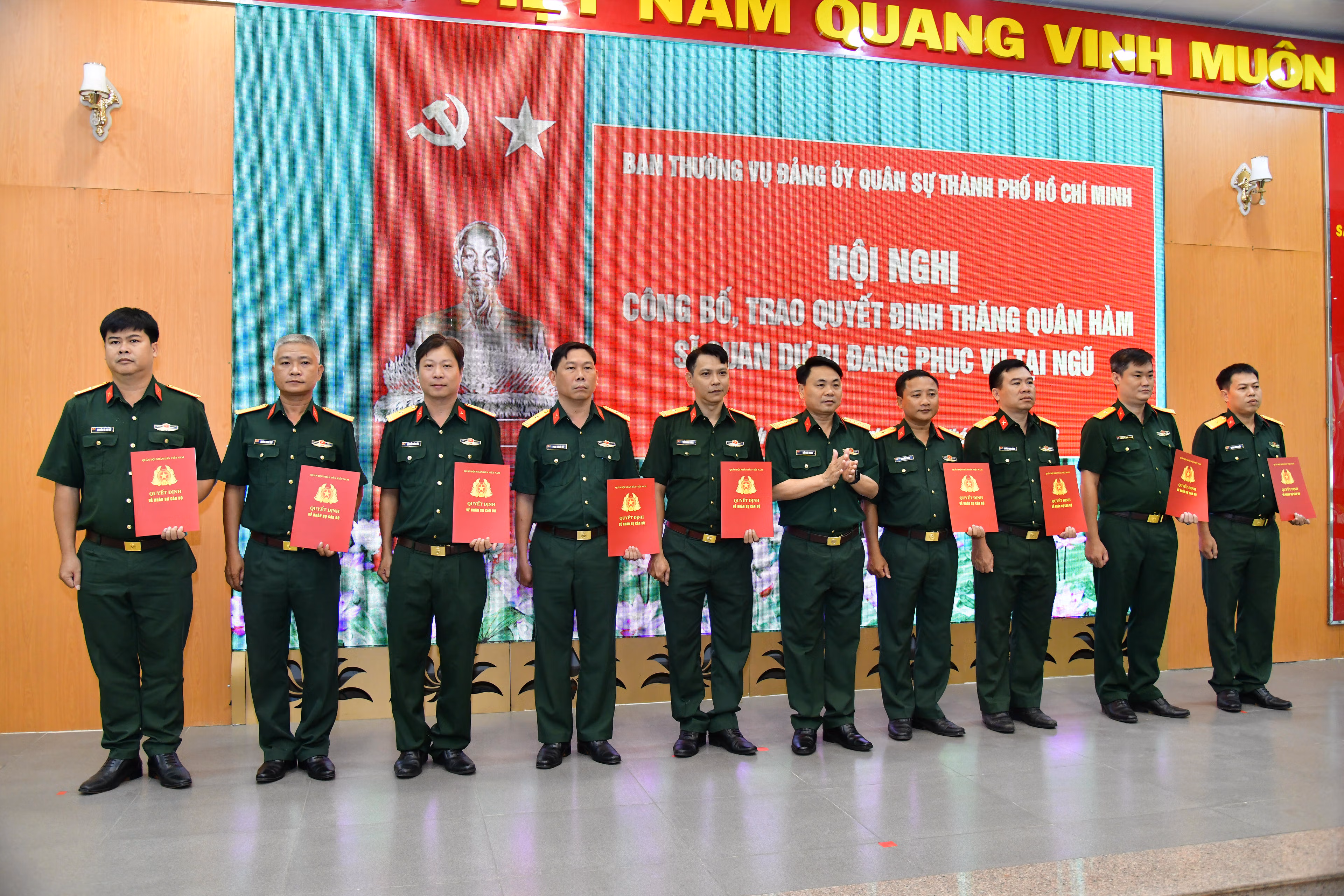 Tại hội nghị, Đại tá Trần Văn Trung, Chủ nhiệm Chính trị Bộ Tư lệnh Thành phố đã công bố quyết định của Quân khu 7 và Bộ Tư lệnh Thành phố về việc thăng quân hàm đối với các đồng chí sĩ quan dự bị đang phục vụ tại ngũ của Ban CHQS cấp xã.