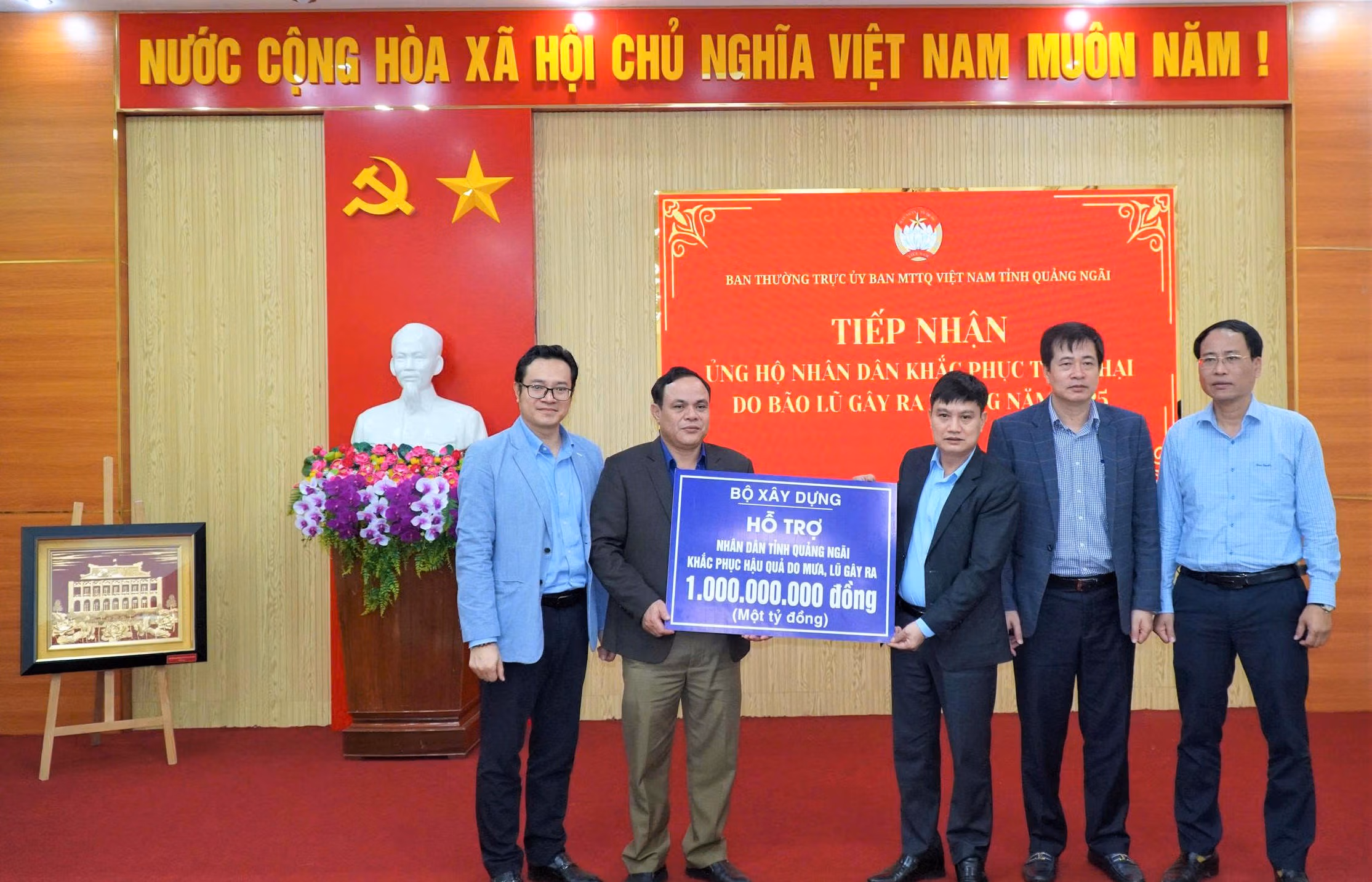 Ngày 29/12, Ủy ban MTTQ Việt Nam tỉnh Quảng Ngãi đã tiếp nhận số tiền 1 tỷ đồng do Bộ Xây dựng ủng hộ, nhằm hỗ trợ người dân trên địa bàn tỉnh khắc phục thiệt hại do mưa lũ gây ra.