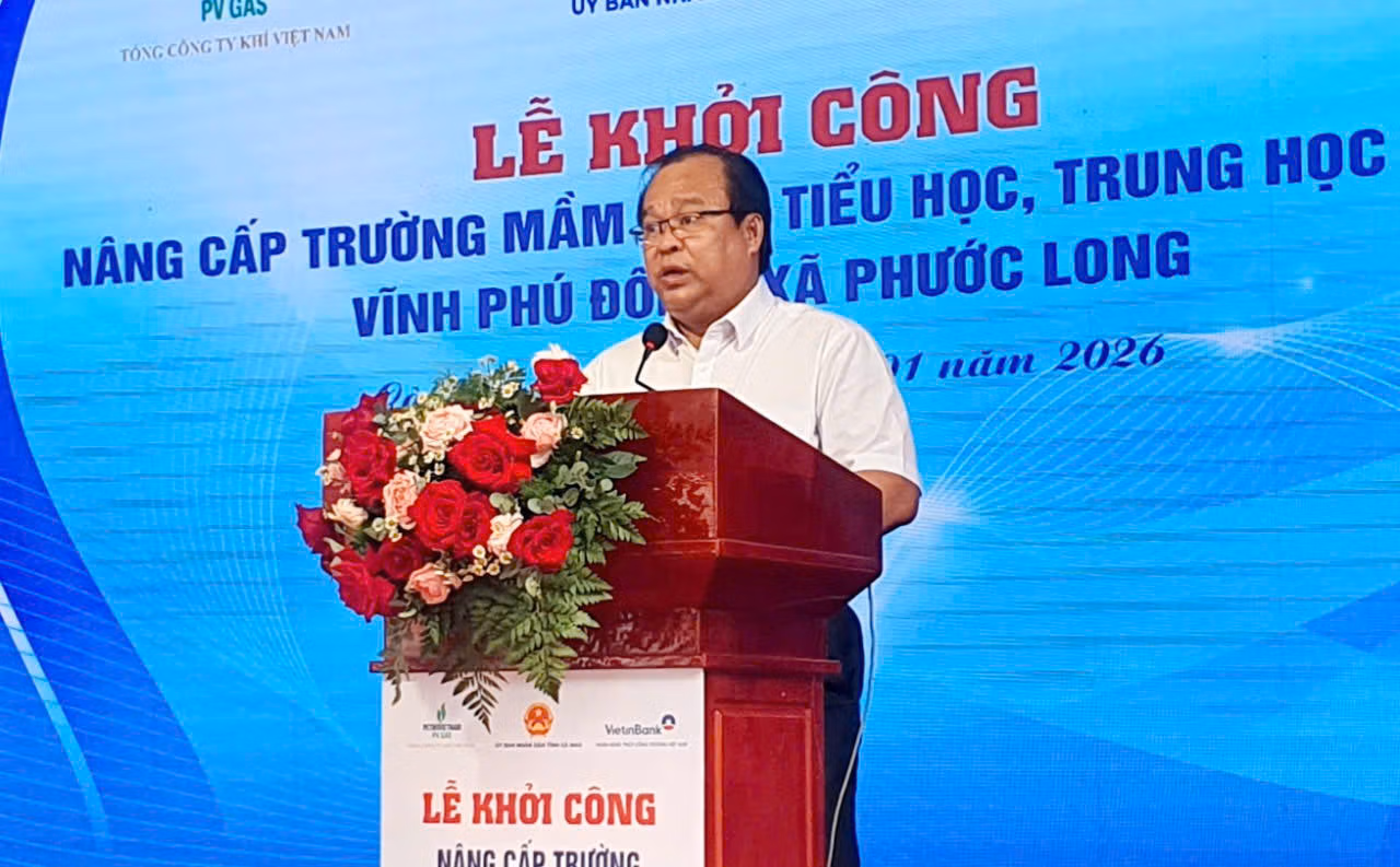 Cũng tại buổi lễ, đại diện Tổng Công ty Khí Việt Nam và Ngân hàng TMCP Công thương Việt Nam đã trao tặng 20 tỷ đồng (mỗi đơn vị 10 tỷ đồng) hỗ trợ đầu tư xây dựng cơ sở vật chất giáo dục tại xã Phước Long. Nguồn kinh phí này sẽ góp phần quan trọng vào việc triển khai dự án đúng tiến độ, đảm bảo chất lượng và hiệu quả sử dụng lâu dài.