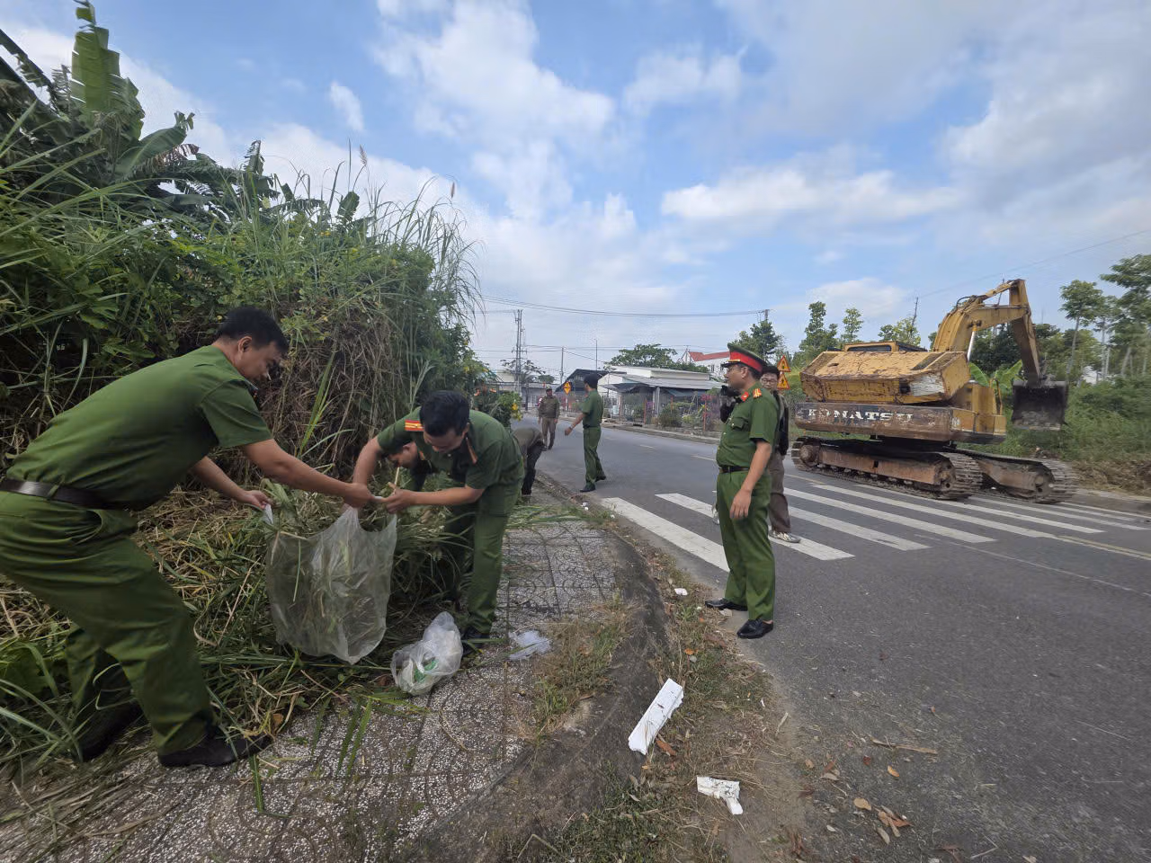 Ngay sau lễ phát động, toàn thể lực lượng đã tiến hành nhiều phần việc cụ thể như: thu gom rác thải, cắt cỏ hai bên đường, kết hợp tuyên truyền, huy động người dân cùng tham gia dọn dẹp vệ sinh, trồng cây xanh, phân loại rác, lắp camera an ninh, … Không khí làm việc diễn ra sôi nổi, tích cực, thể hiện tinh thần đoàn kết, trách nhiệm của mỗi cá nhân.