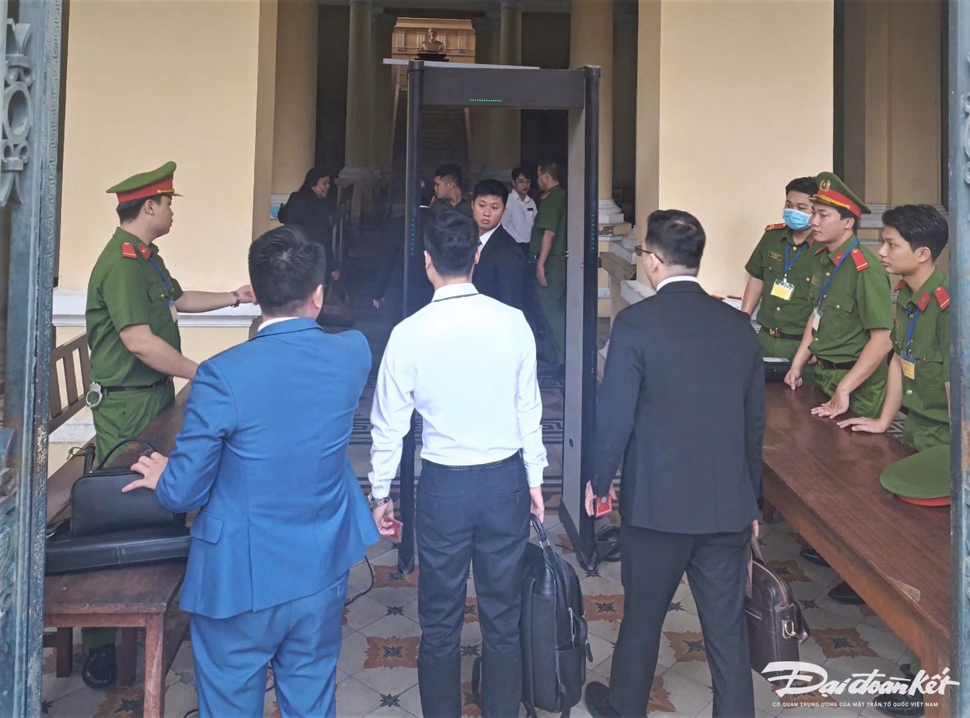 Ghi nhận của phóng viên Đại Đoàn Kết, từ 6 giờ sáng an ninh phiên tòa được thắt chặt. Các luật sư, bị cáo, bị hại và người có quyền và nghĩa vụ liên quan đều phải qua khâu kiểm tra an ninh để vào phòng xử án.