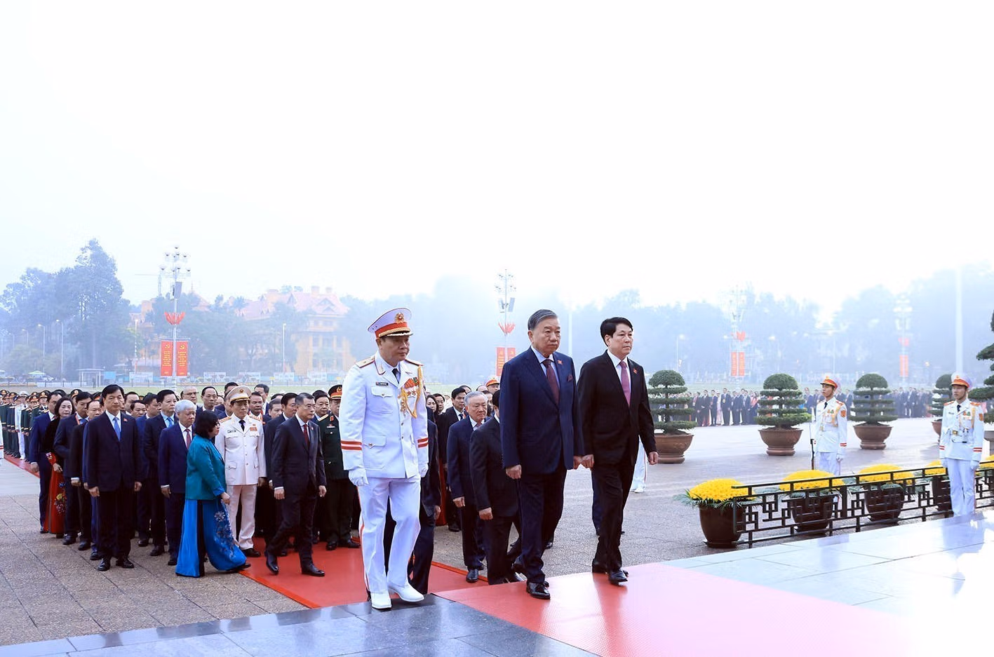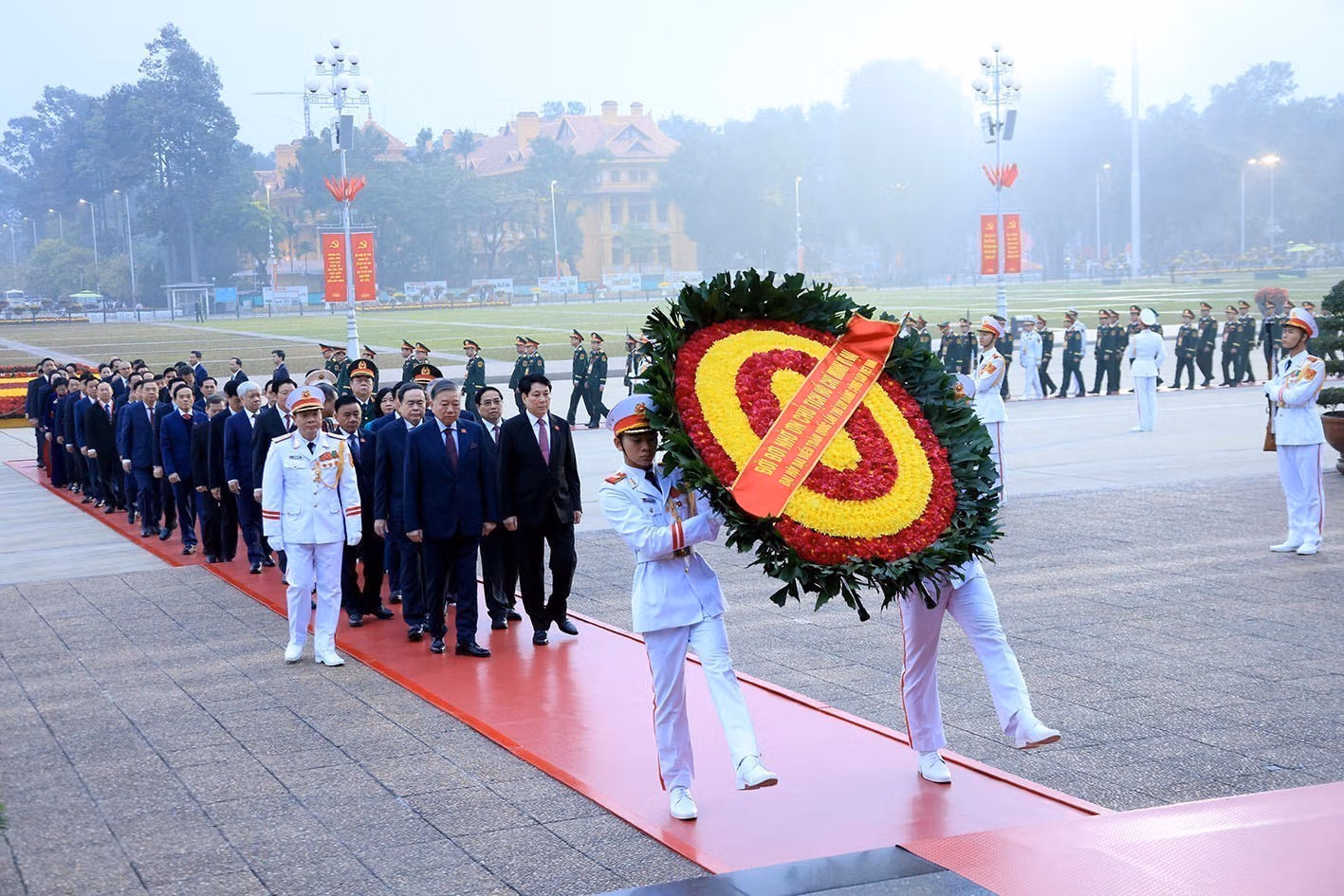 Sáng 19/1, trước giờ khai mạc phiên trù bị Đại hội đại biểu toàn quốc lần thứ XIV của Đảng Cộng sản Việt Nam, các đại biểu dự Đại hội đến đặt vòng hoa và vào Lăng viếng Chủ tịch Hồ Chí Minh; đặt vòng hoa và dâng hương tại Đài tưởng niệm các Anh hùng liệt sĩ.