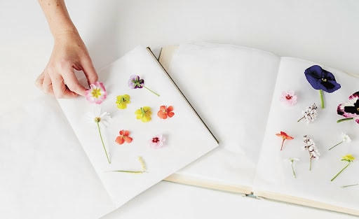 Ép hoa tươi thành hoa khô là cách dễ dàng nhất để lưu giữ lại giá trị tinh thần được gửi gắm trong món quà này. Phương pháp ép hoa bằng sách giúp hoa phẳng, thích hợp để trang trí thiệp, bookmark (kẹp sách) hoặc trang trí khung ảnh. Bạn nên sử dụng phương pháp cổ điển này với những loài hoa cánh mỏng, thân không mọng nước như hoa đào, hoa cánh bướm, cúc, oải hương, phi yến… Những loại hoa có cánh dày như hoa hồng dễ biến đổi màu sau khi khô chỉ nên ép từng cánh.