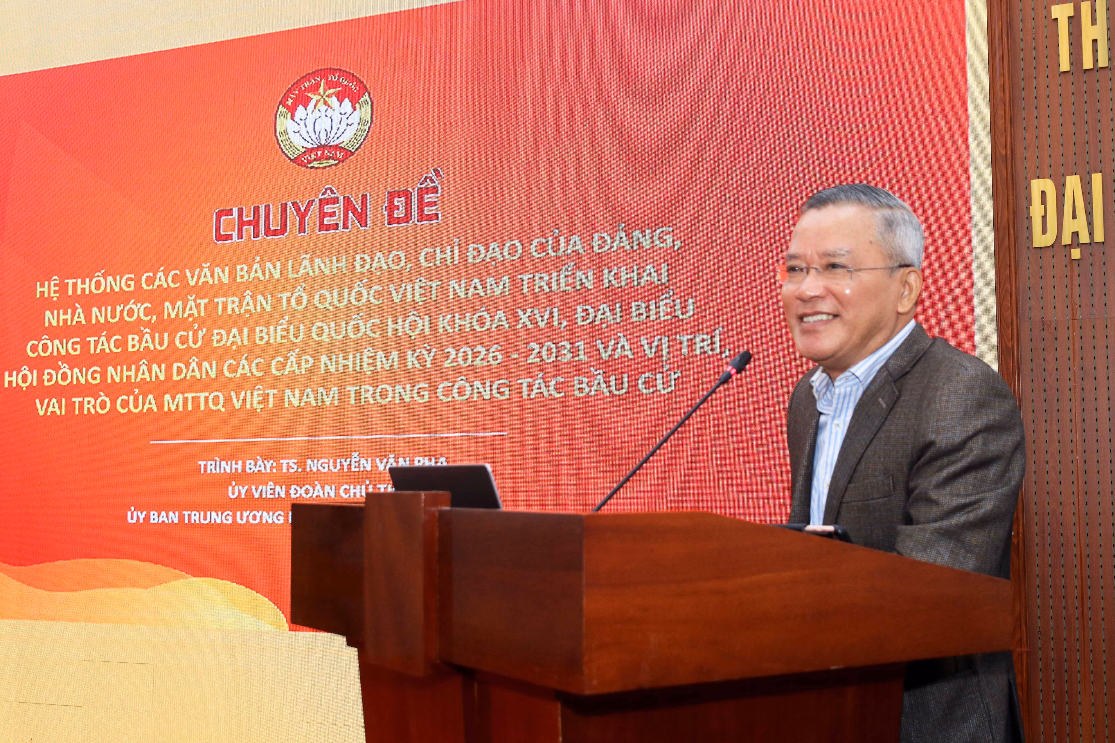 Theo Phó Chủ tịch Hoàng Công Thủy, ngày 15/3/2026 là Ngày toàn dân đi bầu cử đại biểu Quốc hội và đại biểu Hội đồng nhân dân các cấp. Tiếp nối Hội nghị toàn quốc triển khai công tác bầu cử đại biểu Quốc hội khoá XVI, đại biểu Hội đồng nhân dân các cấp nhiệm kỳ 2026-2031 của Hội đồng bầu cử quốc gia tổ chức vào ngày 15/11/2025, Ban Thường trực UBTƯ MTTQ Việt Nam tổ chức Hội nghị tập huấn công tác bầu cử đại biểu Quốc hội khóa XVI và đại biểu Hội đồng nhân dân các cấp nhiệm kỳ 2026-2031 theo hình thức trực tiếp, kết hợp trực tuyến cho toàn thể đội ngũ cán bộ trong toàn hệ thống Mặt trận để tiếp tục triển khai đồng bộ, thống nhất công tác bầu cử, hướng dẫn, giải đáp kịp thời những nội dung, vấn đề phát sinh trong công tác bầu cử.