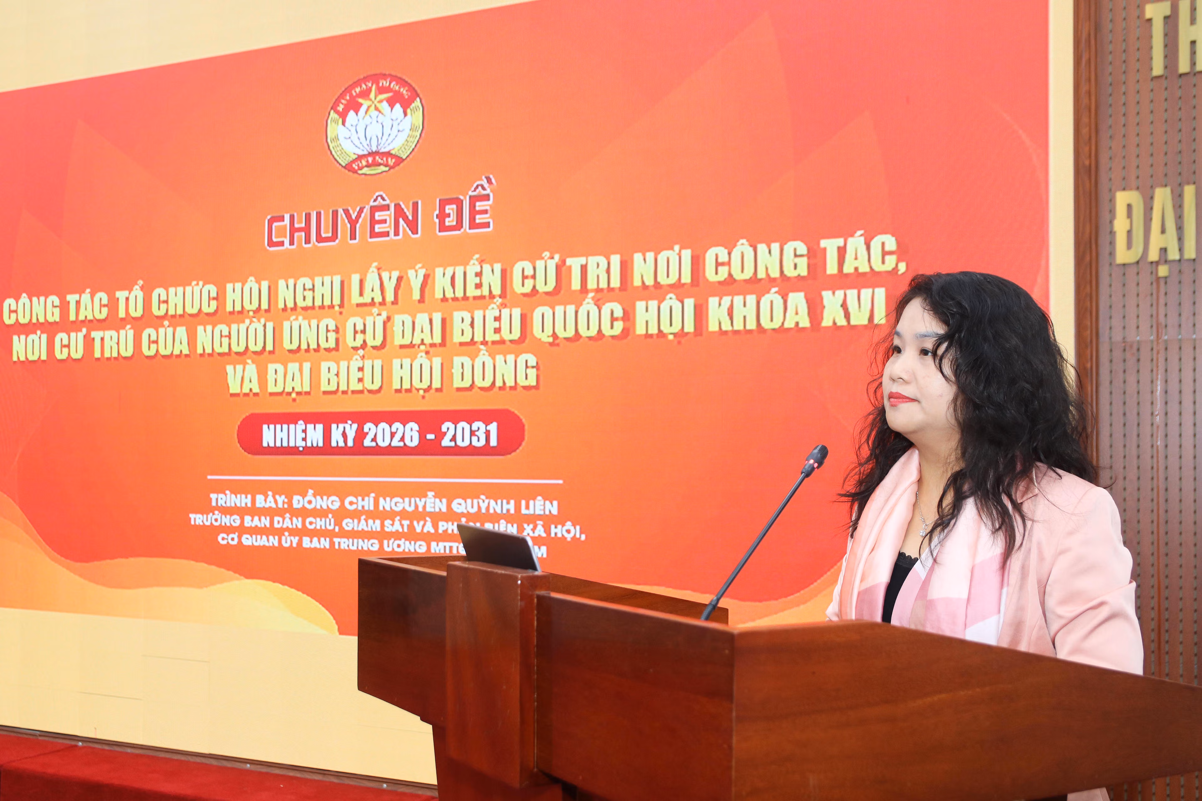 Tại Hội nghị, các đại biểu đã nghe các báo viên giới thiệu và quán triệt các văn bản quy định về trách nhiệm của MTTQ Việt Nam trong bầu cử; hướng dẫn chi tiết về công tác hiệp thương, lựa chọn, giới thiệu người ứng cử; công tác tổ chức Hội nghị lấy ý kiến cử tri nơi công tác, nơi cư trú của người ứng cử; Công tác kiểm tra, giám sát bầu cử đại biểu Quốc hội khóa XVI và đại biểu Hội đồng nhân dân các cấp nhiệm kỳ 2026-2031.