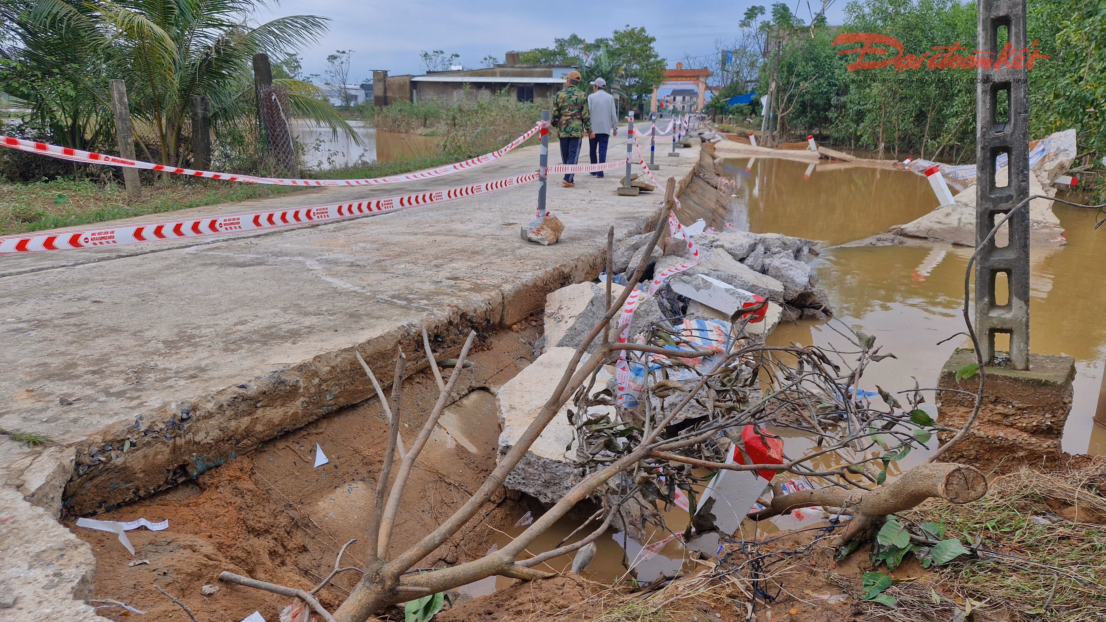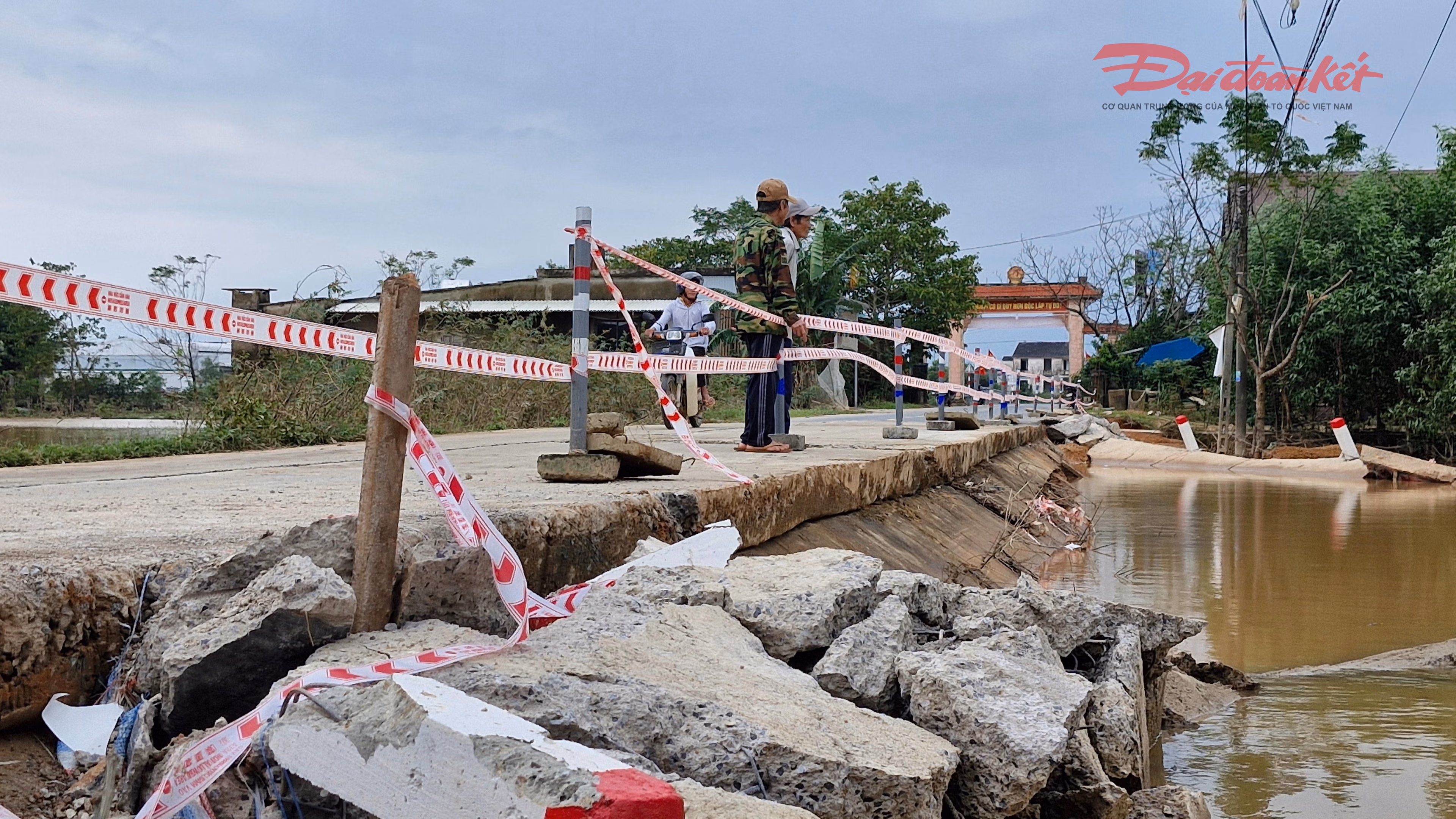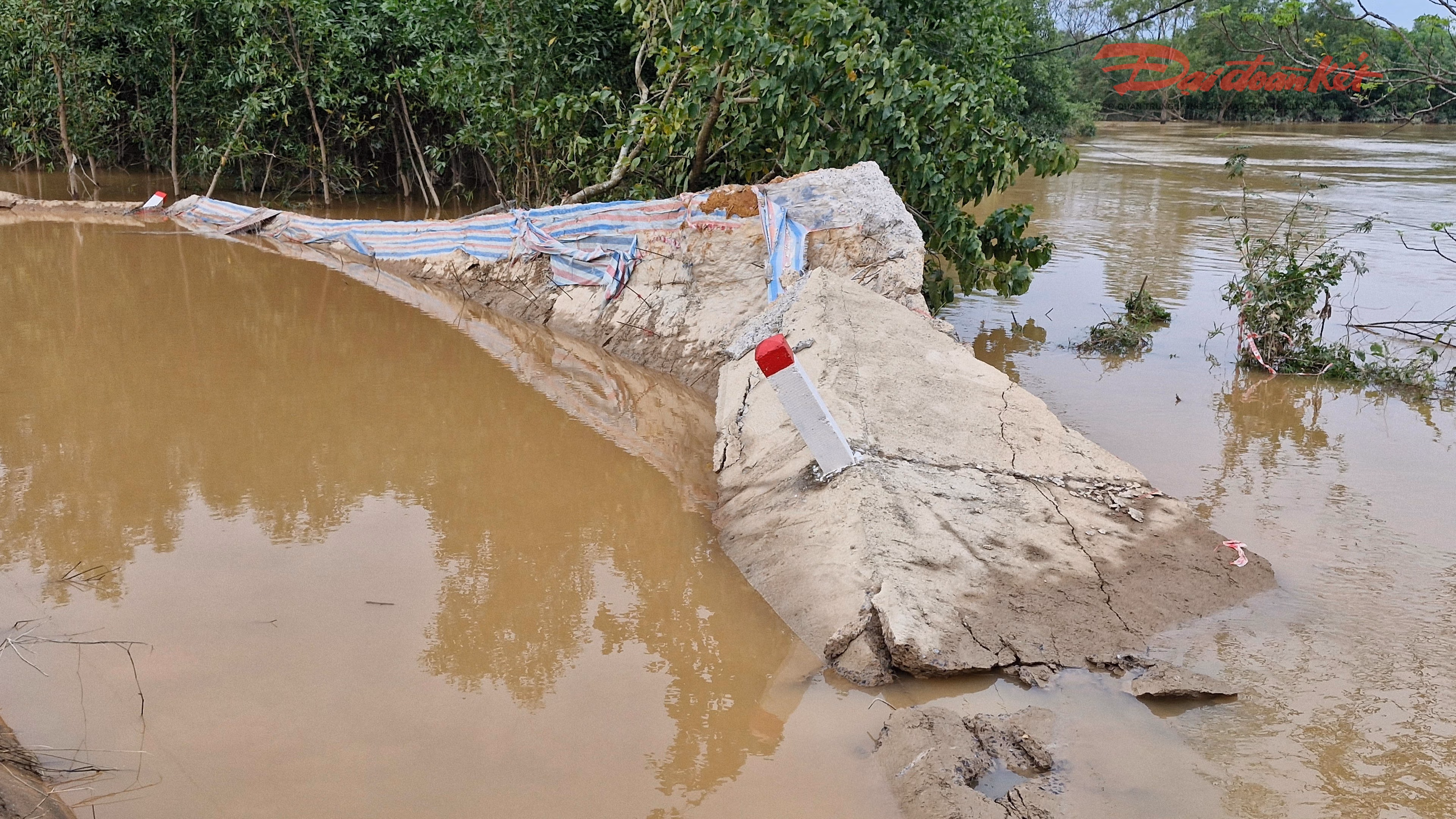 Cận cảnh bờ kè bị nước lũ tàn phá, làm xô lệch ở Quảng Trị