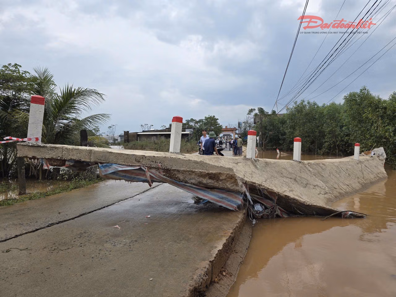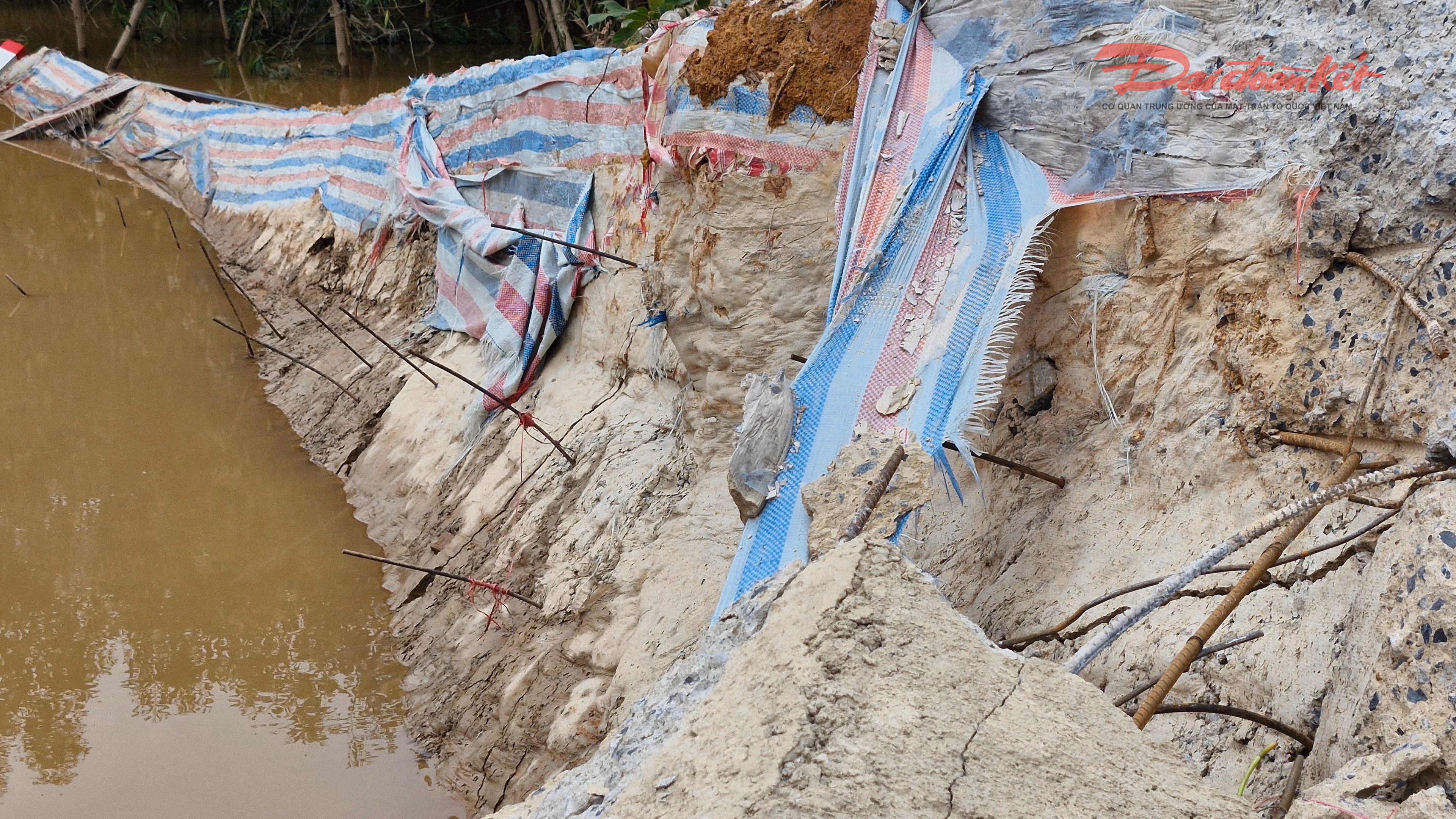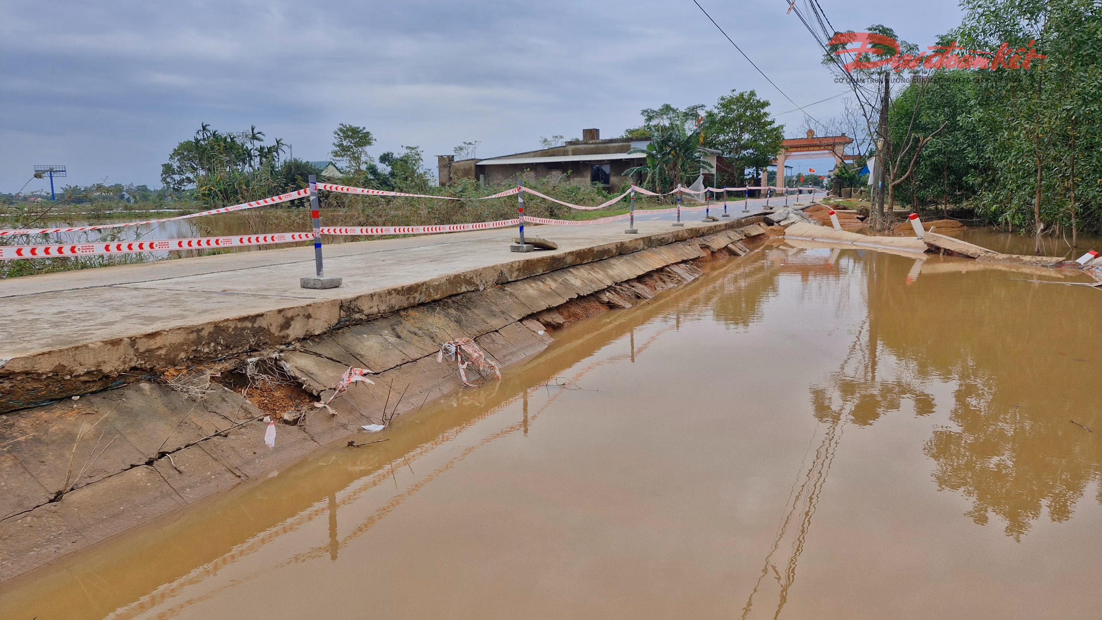 Cận cảnh bờ kè bị nước lũ tàn phá, làm xô lệch ở Quảng Trị