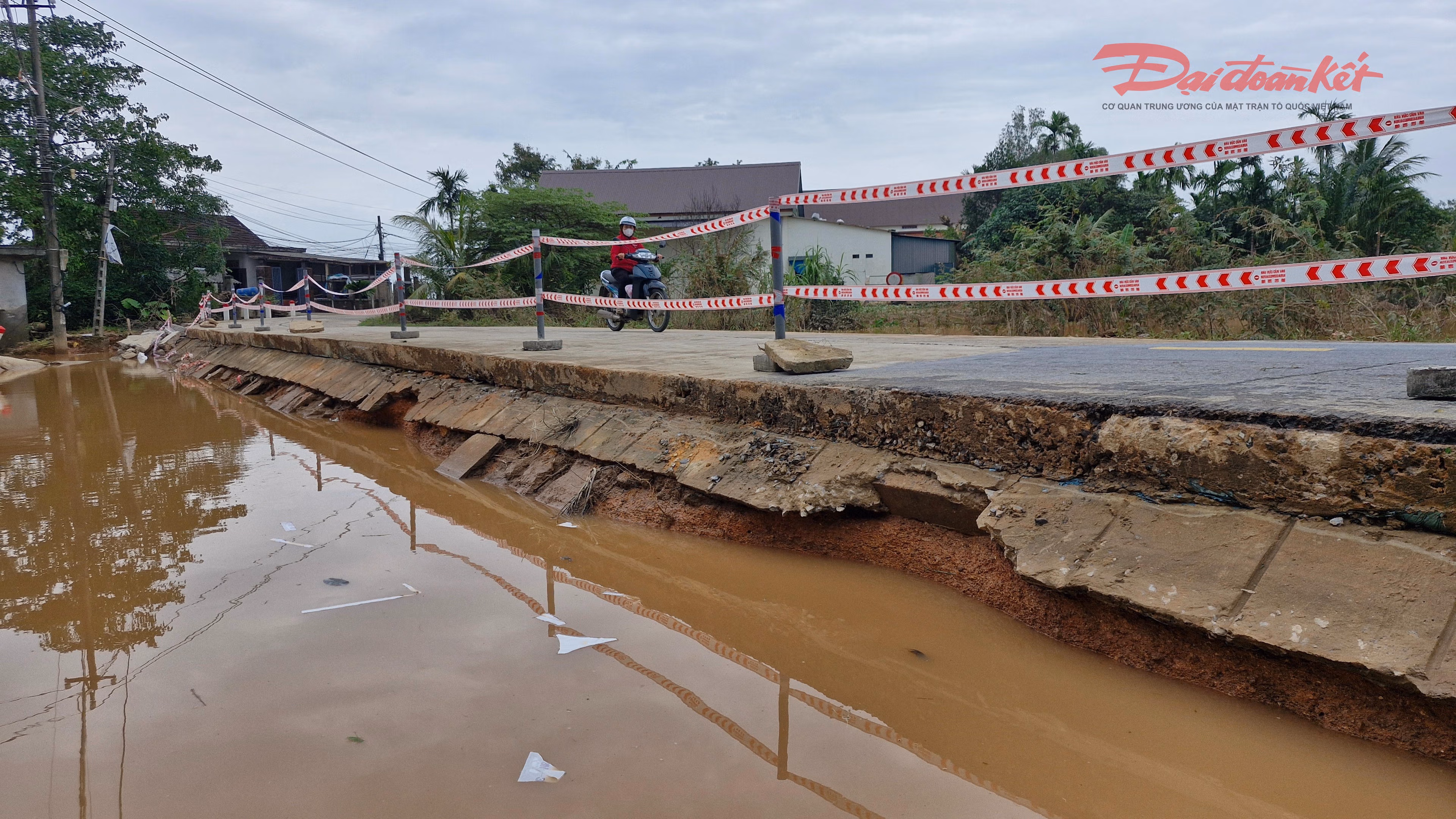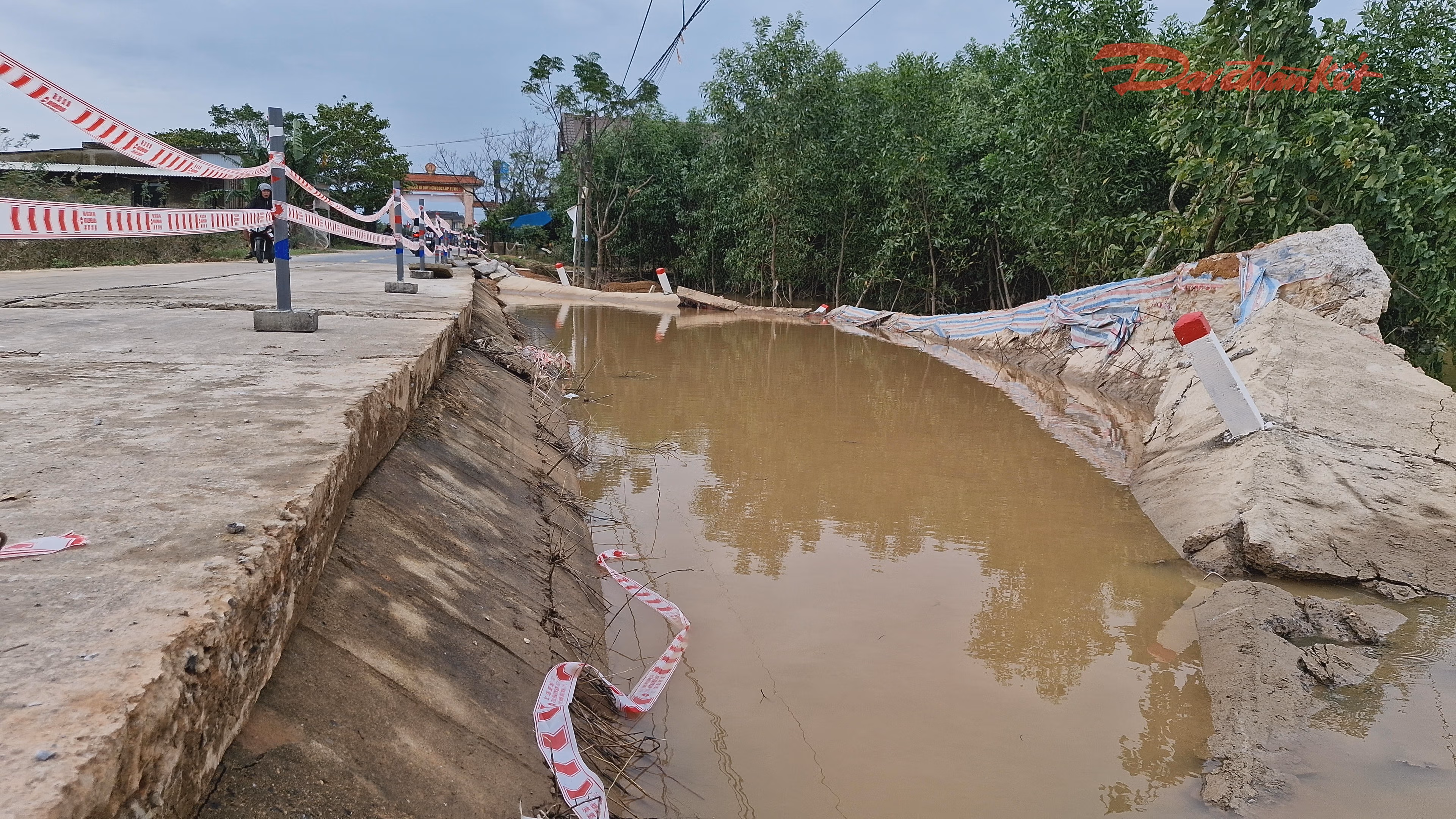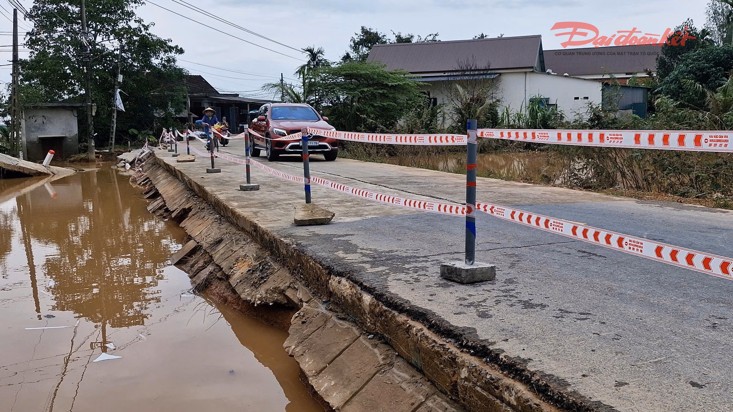 Chính quyền địa phương, lực lượng chức năng đã triển khai các biện pháp đảm bảo an toàn cho người dân lưu thông qua khu vực này. Ảnh: Đ.V.