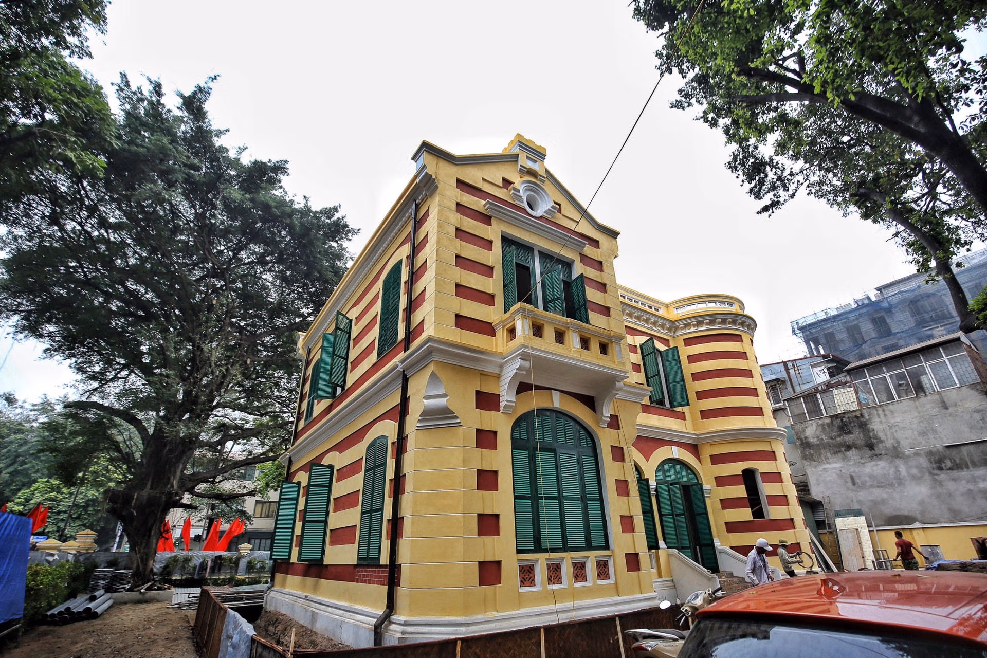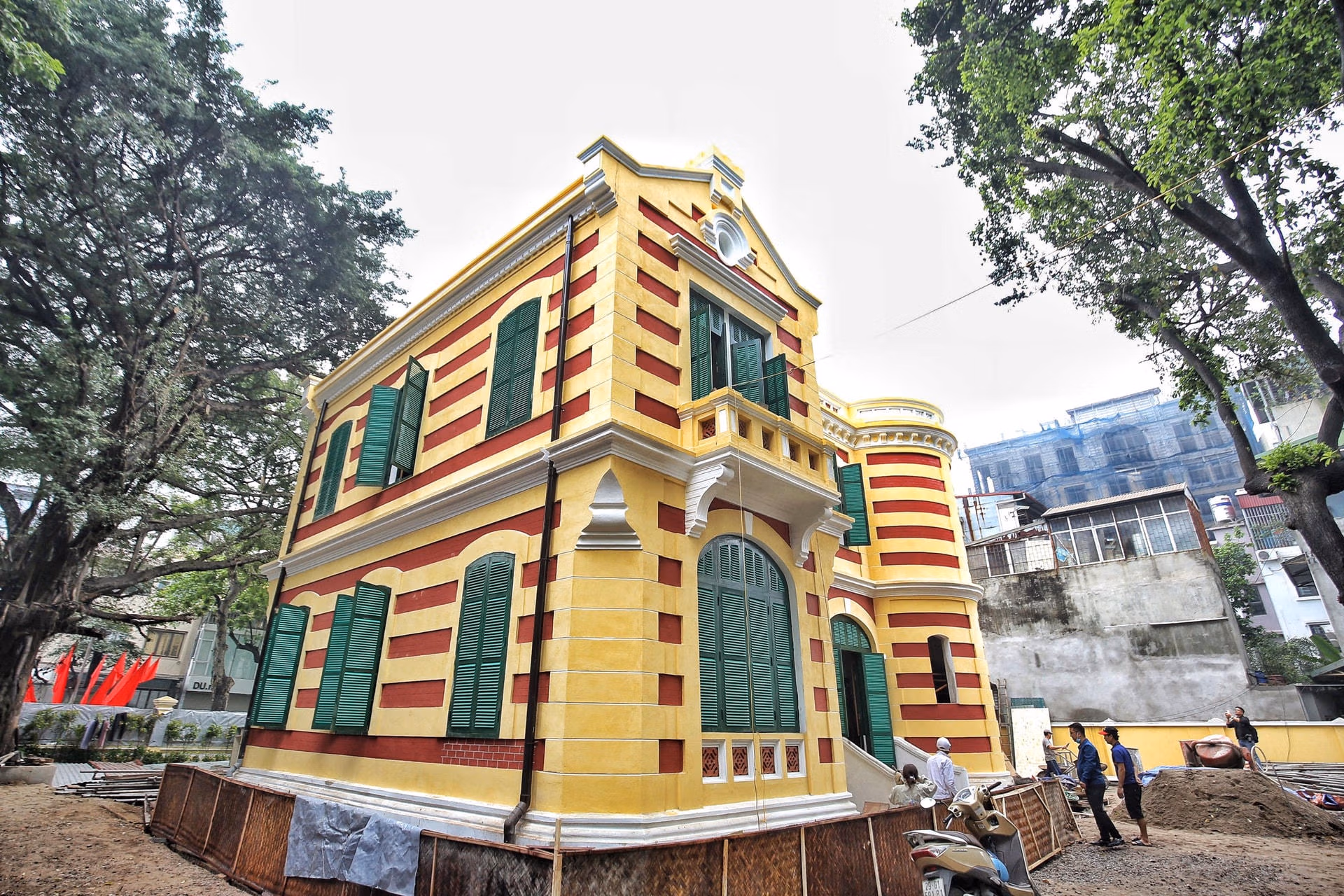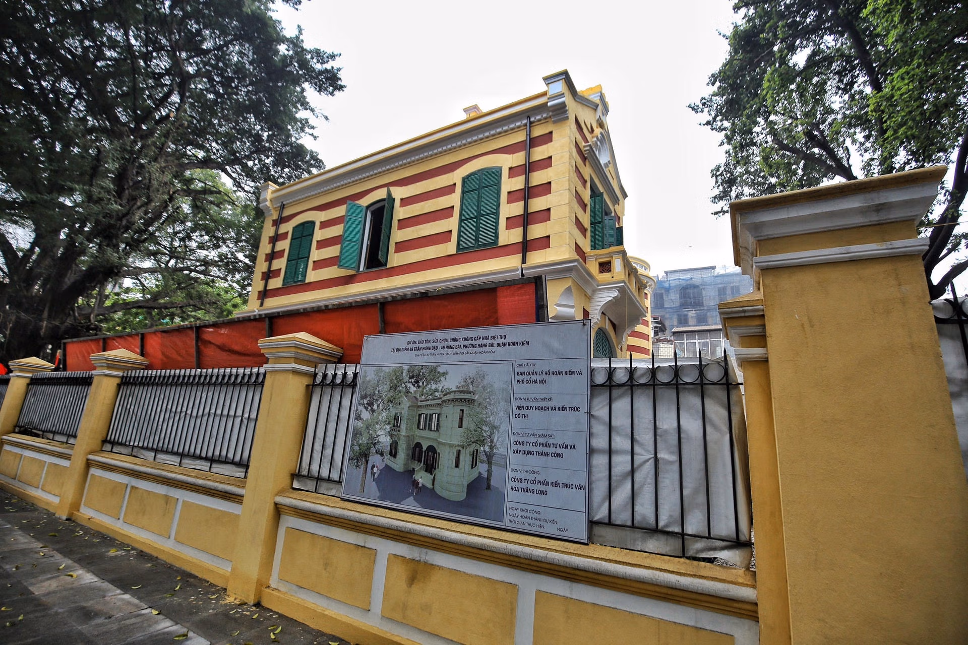 Cận cảnh căn biệt thự Pháp cổ có 'tọa độ kim cương' tại Hà Nội Chủ Nhật 16/04/2023 07:44 (GMT+7) Sau 1 năm trùng tu, căn biệt thự kiểu Pháp nằm ở 46 Hàng Bài (quận Hoàn Kiếm, Hà Nội) đã khoác nên mình "bộ áo mới". Căn biệt thự 46 Hàng Bài nằm ngay vị trí Ngã tư phố Hàng Bài - Trần Hưng Đạo (quận Hoàn Kiếm, Hà Nội) được mệnh danh là khu đất “kim cương” của Hà Nội. Do được xây dựng từ lâu nên căn biệt thự cổ này đã xuống cấp nghiêm trọng. Trước đây, căn biệt thự cổ này là trụ sở của Nhà xuất bản văn học.Do căn biệt thự xuống cấp nghiêm trọng, ngày 27/4/2022, UBND quận Hoàn Kiếm khởi công dự án bảo tồn, sửa chữa, chống xuống cấp nhà biệt thự 49 Trần Hưng Đạo - 46 Hàng Bài.Sau 1 năm trùng tu, ngôi biệt thự này đã dần thay đổi diện mạo mới.Dự án Bảo tồn, sửa chữa, chống xuống cấp nhà biệt thự 49 Trần Hưng Đạo - 46 Hàng Bài do Ban Quản lý hồ Hoàn Kiếm và phố cổ Hà Nội làm chủ đầu tư, với sự hỗ trợ kỹ thuật của các chuyên gia vùng Ile-de-France (Pháp).Căn biệt thự này có diện tích đất lên tới hơn 990 m2, được xây dựng từ những năm đầu thế kỷ 20, là một trong những công trình còn giữ nguyên được nhiều giá trị kiến trúc.Đại diện chủ đầu tư cho hay việc bảo tồn, tu bổ biệt thự này gặp nhiều khó khăn vì tư liệu liên quan đến bản thiết kế hầu như không còn; hình ảnh còn lưu trữ chỉ là ảnh đen trắng, khi phóng to ảnh lên cũng không xác định rõ được kiến trúc bị hư hại."Dự án này có tổng mức đầu tư khoảng 14,7 tỷ đồng. Tuy nhiên, trong quá trình tu bổ sẽ phát sinh thêm kinh phí vì một số hạng mục đang phải điều chỉnh", đại diện chủ đầu tư cho hay.Theo tìm hiểu, kinh phí đầu tư dự án được sử dụng hoàn toàn bằng vốn ngân sách của quận Hoàn Kiếm.Theo UBND quận Hoàn Kiếm, ngôi biệt thự này nằm trong dự án bảo tồn biệt thự mẫu, nhằm phát huy giá trị di sản văn hóa - lịch sử - kiến trúc của khu phố cũ Hà Nội. Thông qua dự án này sẽ giới thiệu những kỹ thuật cơ bản trong việc bảo tồn, trùng tu một số công trình kiến trúc Pháp, qua đó nâng cao ý thức cộng đồng về bảo tồn di sản.Theo UBND quận Hoàn Kiếm, trong quá trình thi công, tu bổ biệt thự, chuyên gia Pháp và chuyên gia Việt Nam đã làm công tác "khảo cổ học công trình" để tìm ra màu sắc, vật liệu và các chi tiết gốc. Trên cơ sở kết quả khảo cổ, nhóm chuyên gia đưa ra quyết định sử dụng lại các vật liệu màu sắc gốc theo như công trình được xây dựng ban đầu."Hiện tại, các chuyên gia đang quét thử nghiệm một số màu vôi để lựa chọn ra màu vôi gốc nhằm đảm bảo tính chân xác tối đa cho công trình. Màu vôi tường hiện nay chưa phải là màu chính thức của công trình", UBND quận Hoàn Kiếm cho hay.Sàn nhà căn biệt thự cổ này được làm bằng gỗ.Cầu thang lên xuống trong căn biệt thự Pháp cổ. Lê Khánh - Thu Quỳnh