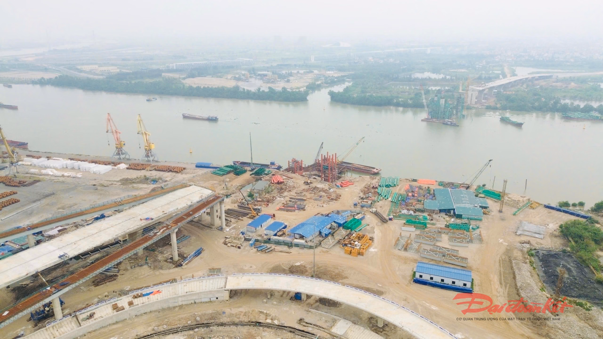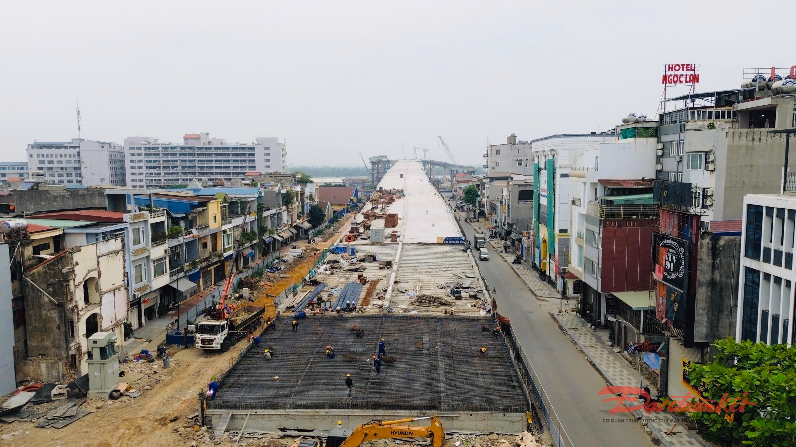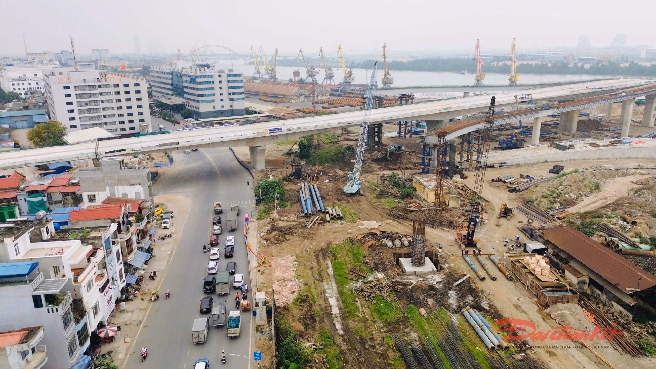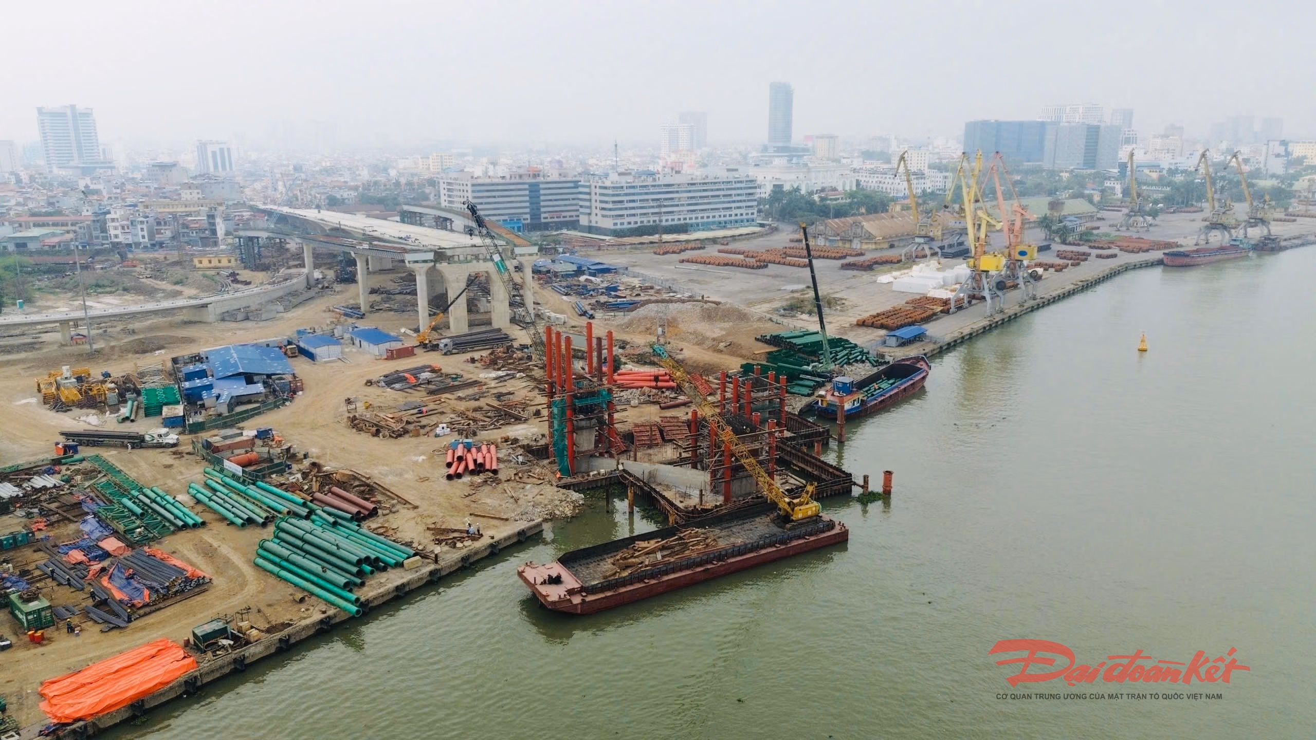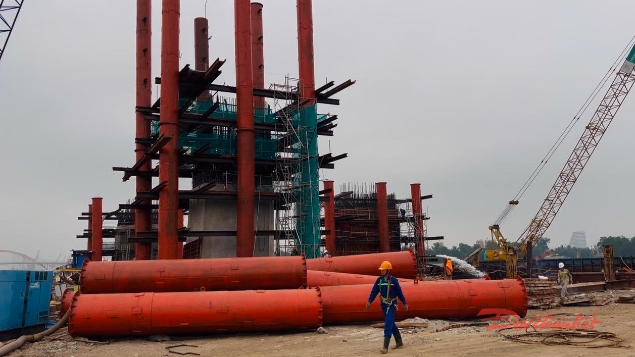 Cận cảnh đại công trường xây dựng cầu dây văng rộng nhất Hải Phòng