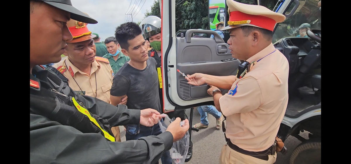 Đồng thời phối hợp với Trung tâm y tế huyện Thống Nhất tiến hành test ma túy, phát hiện lái xe có kết quả dương tính với ma túy.